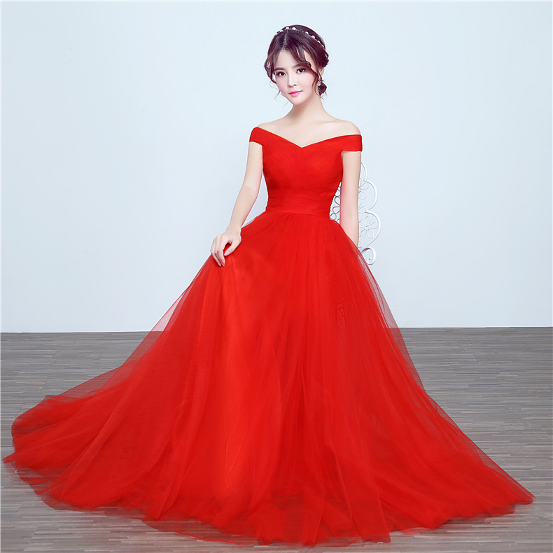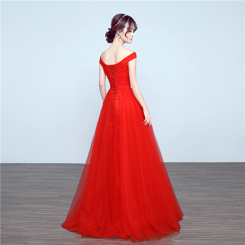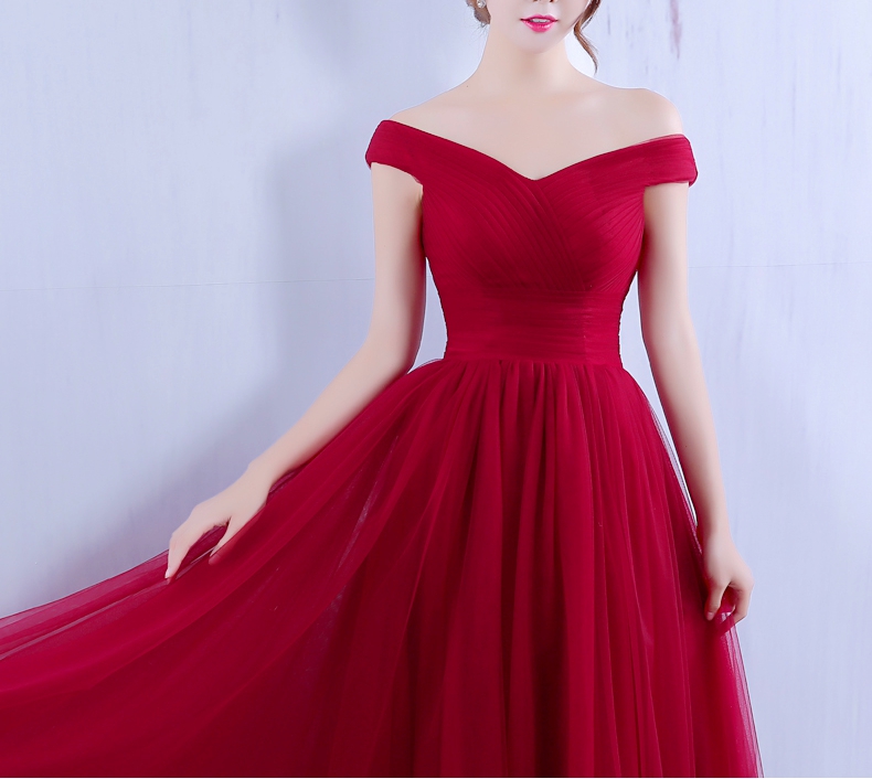 - Elegant A-line off shoulder tulle long prom dress,formal dresses -