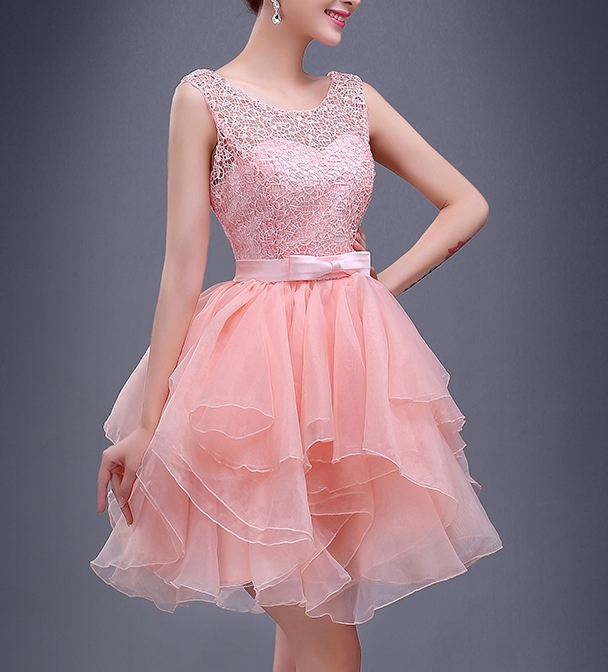 - Charming A-line pink lace short prom dress,homecoming dresses -