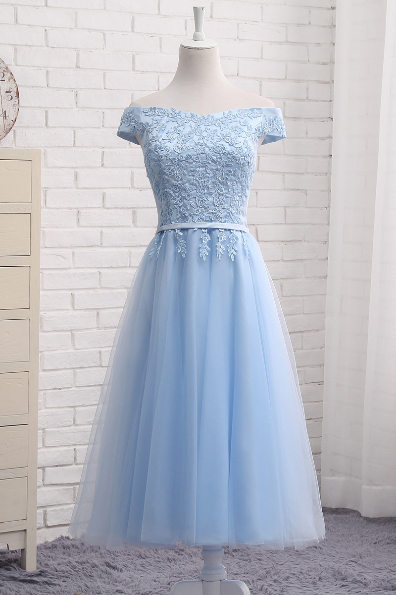- Charming A line blue lace off shoulder prom dress, homecoming dresses -