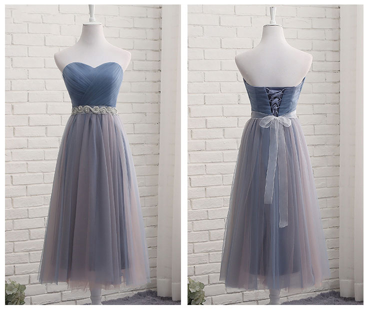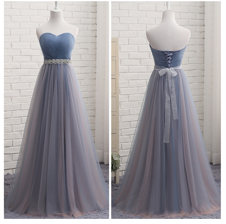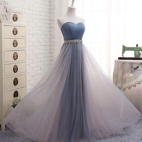 - Gray tulle sweetheart neck long prom dress, evening dress -