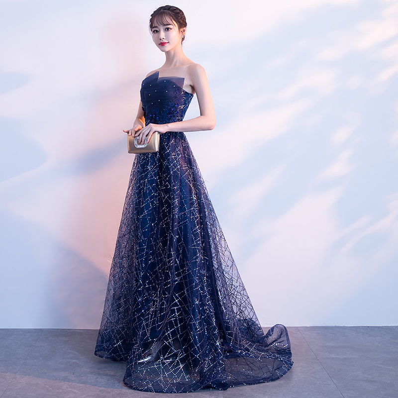 Dark blue sequins tulle long prom dress, evening dress · Little Cute · Online Store Powered by Storenvy