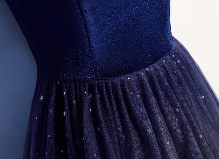 - Blue tulle velvet long prom dress, blue evening dress -