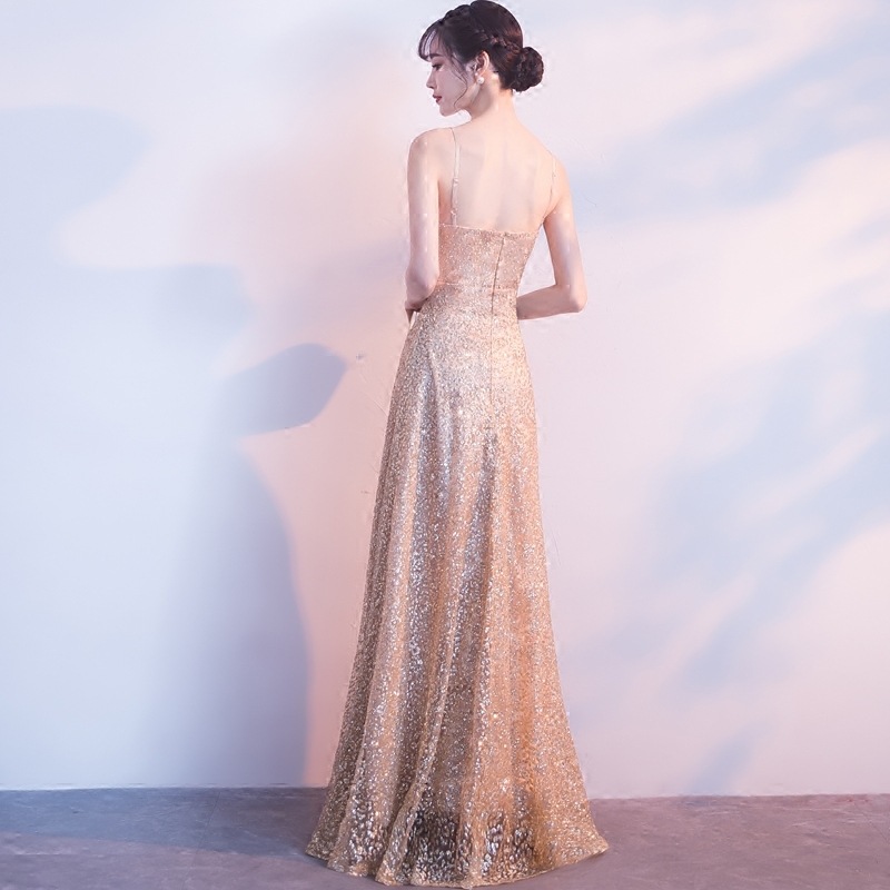 - Gold v neck sequins long prom dress, evening dress -