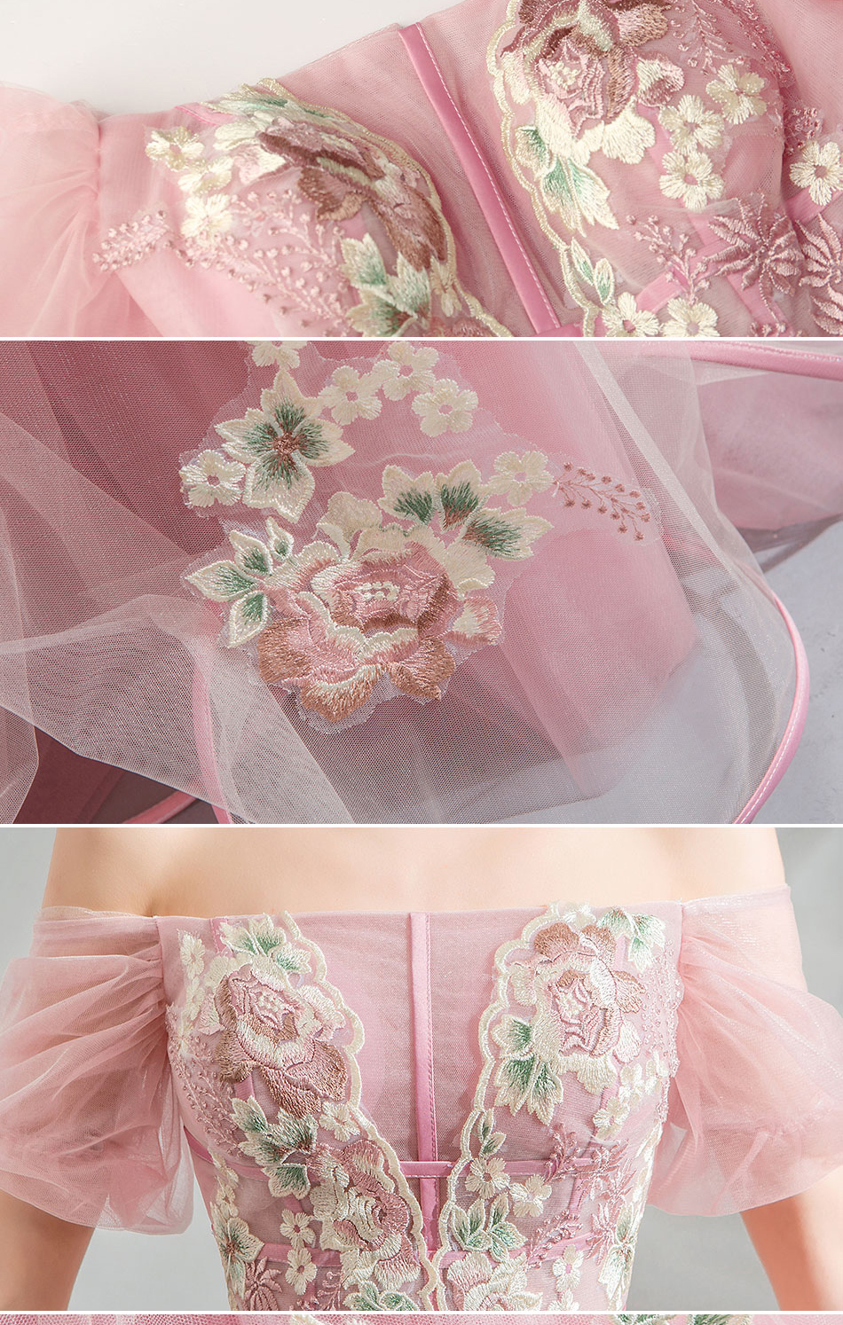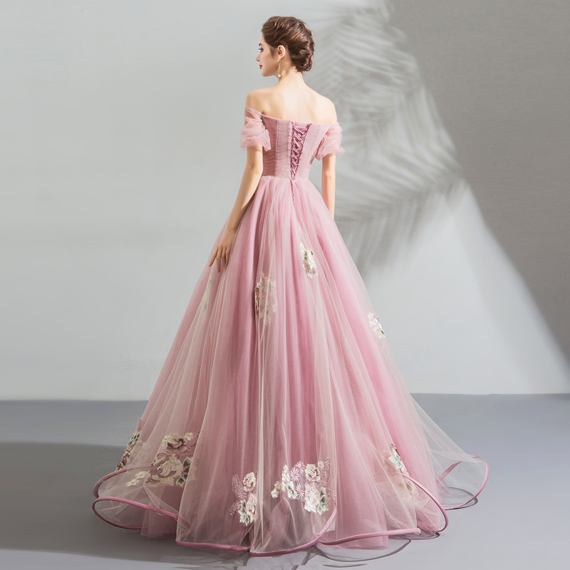 - Pink tulle lace long prom dress, sweet 16 dress -