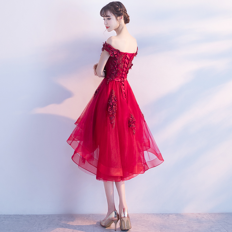 - Burgundy lace tulle short prom dress, homecoming dress -