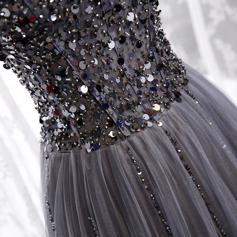 Gray tulle sequins long prom dress · Little Cute · Online Store Powered by Storenvy