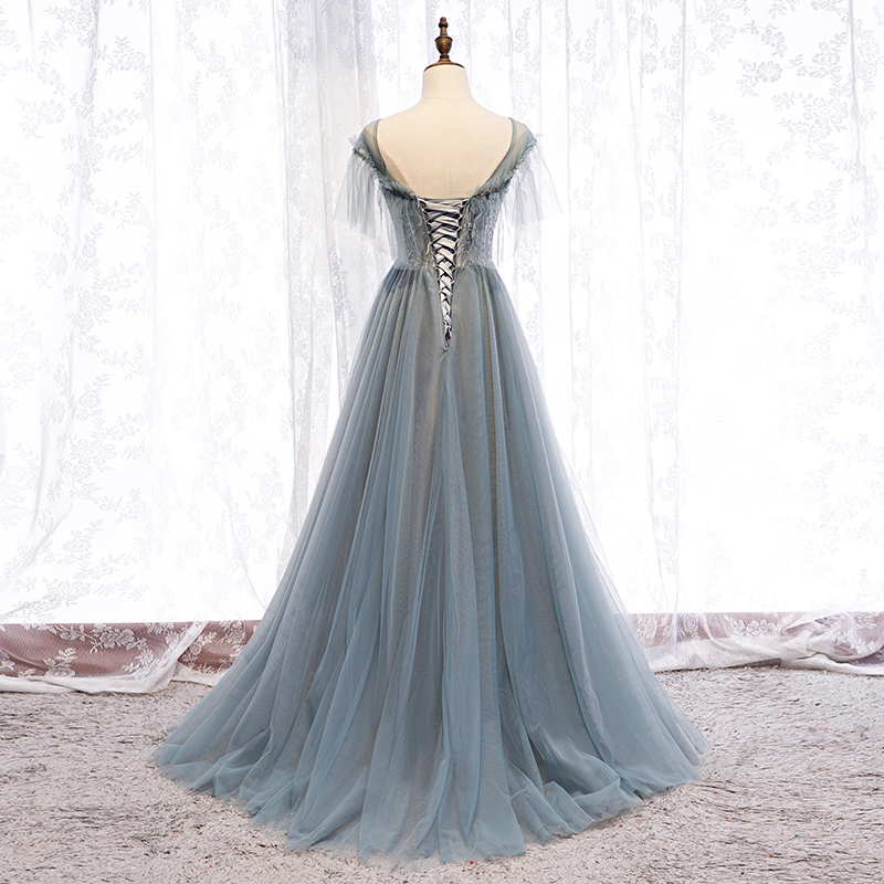- Gray tulle long ball gown dress evening dress -