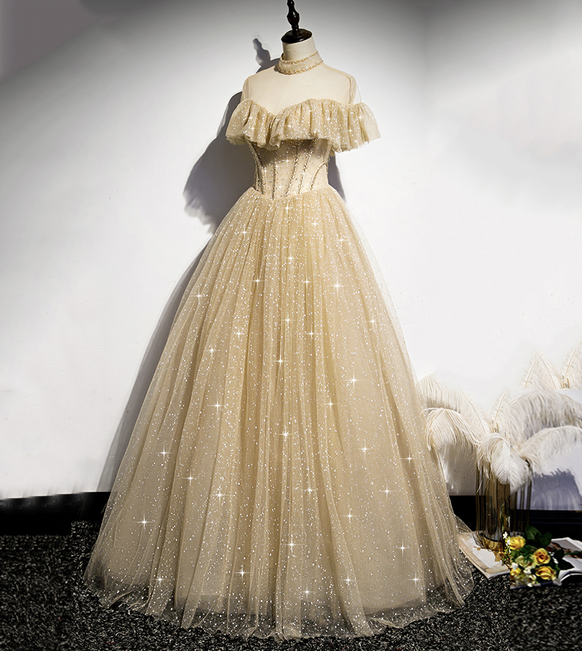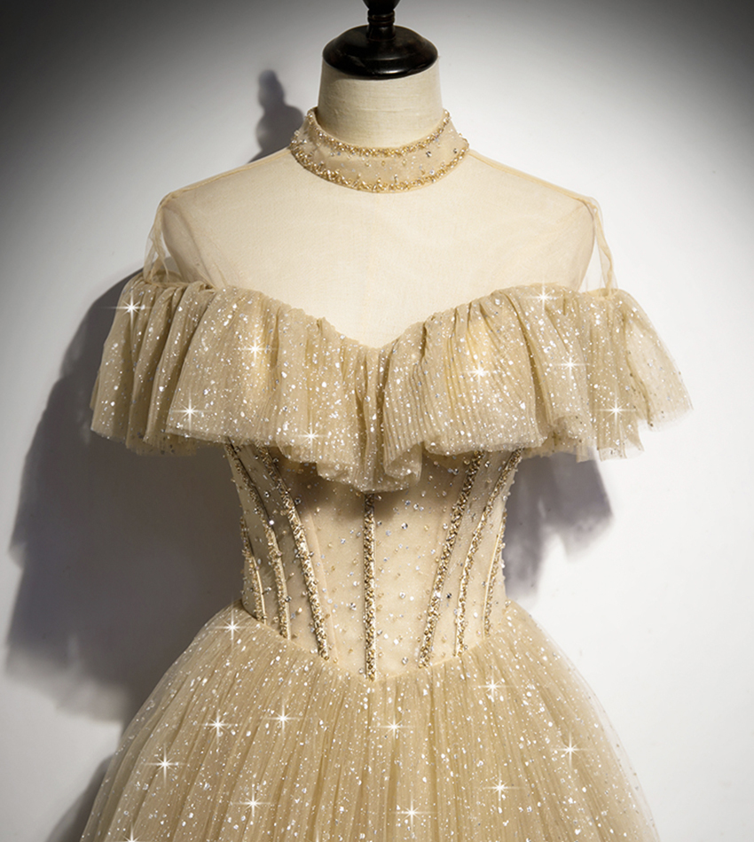 - Gold tulle sequins long ball gown dress formal dress -