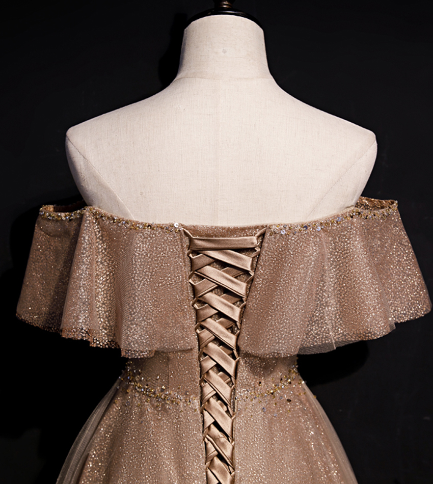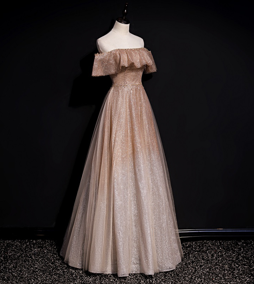 - A line tulle sequins long prom dress evening dress -