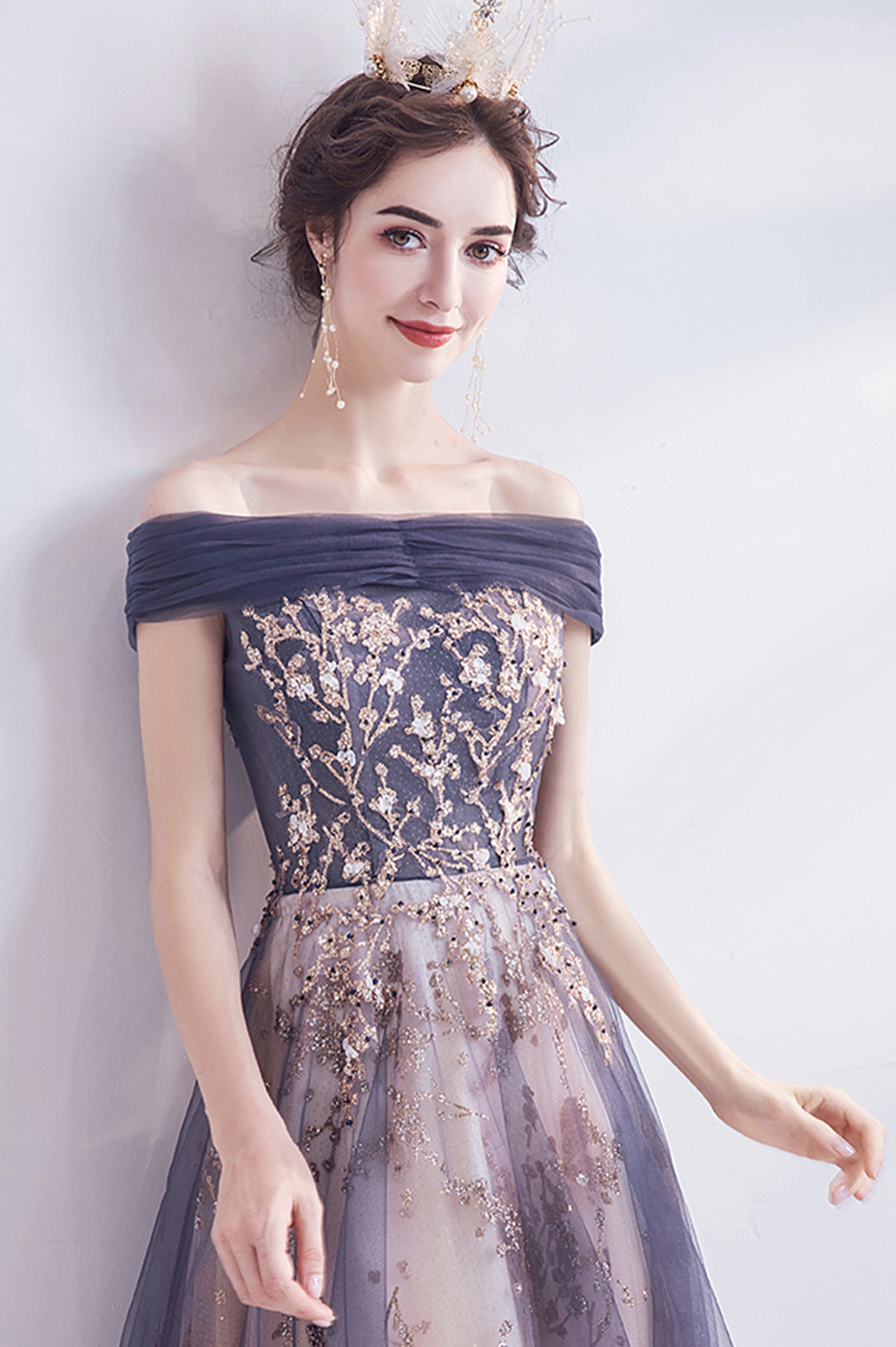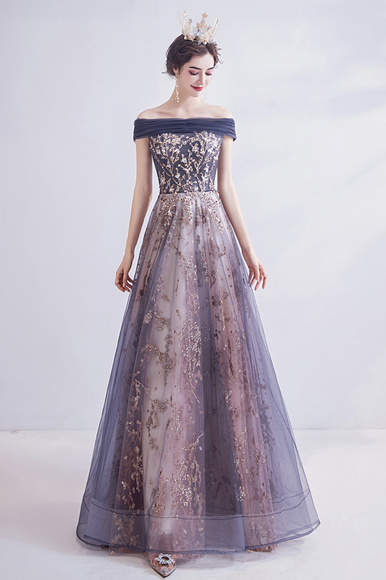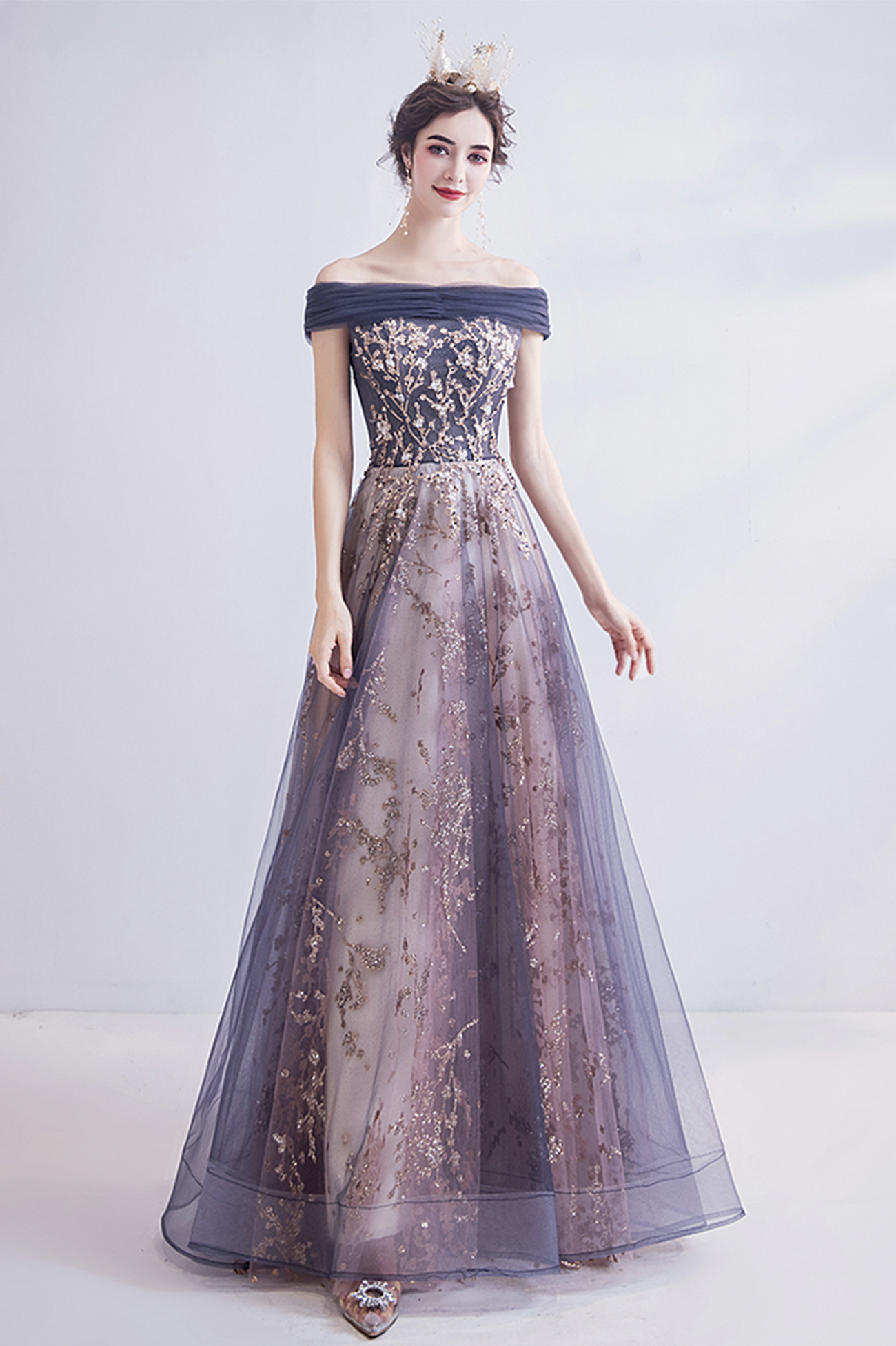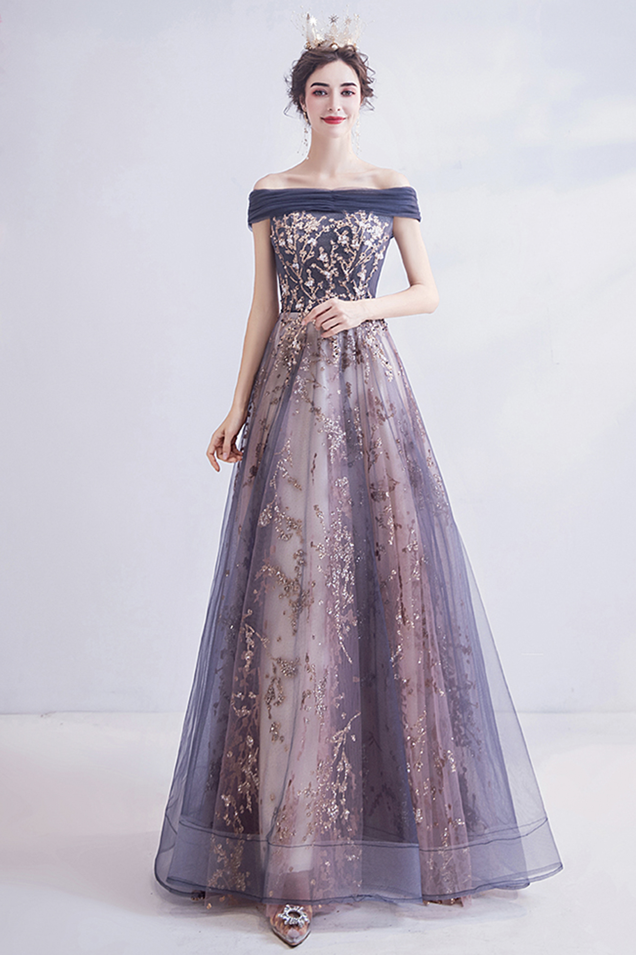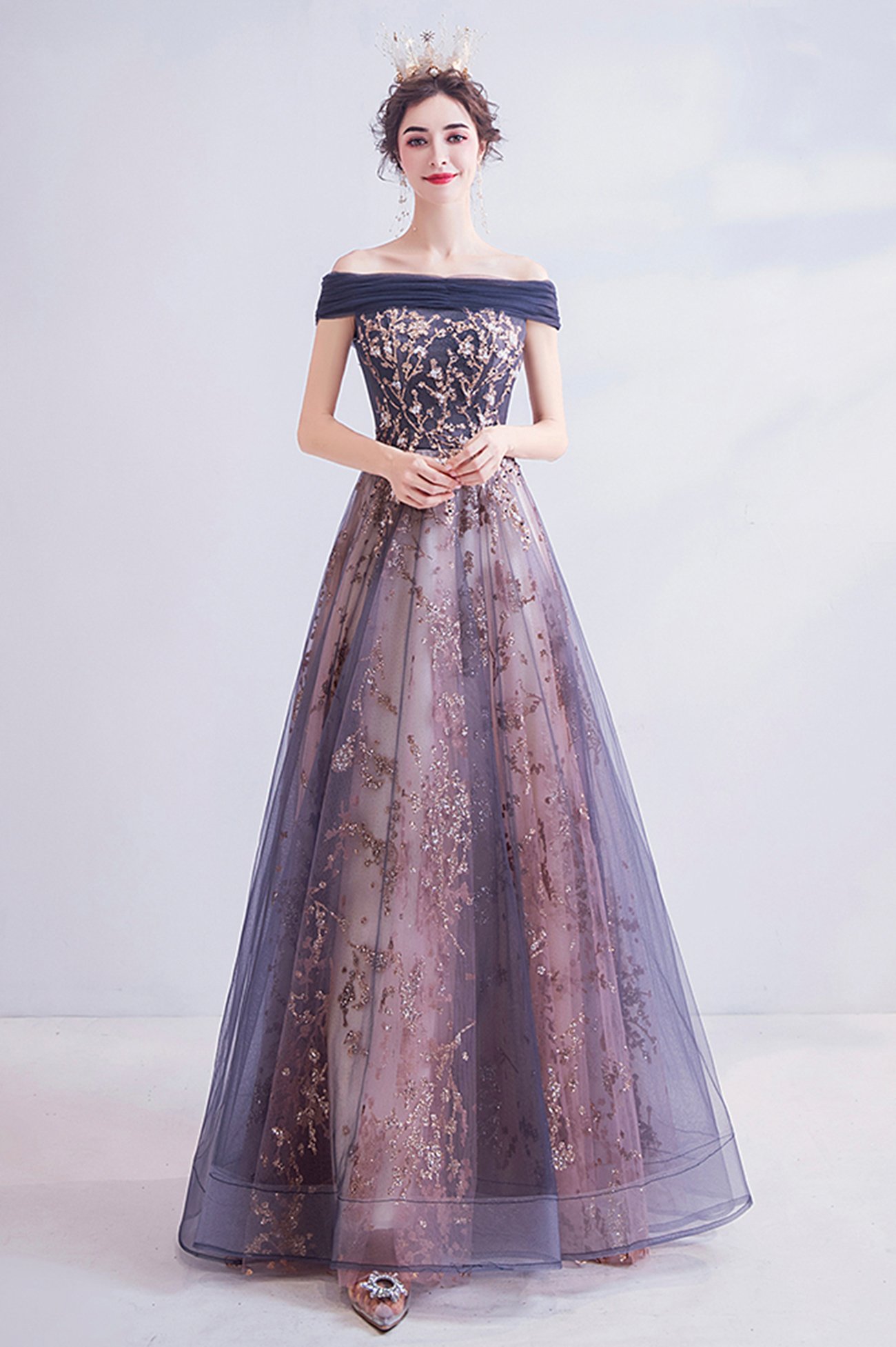 - Shiny tulle sequins long prom dress evening dress -