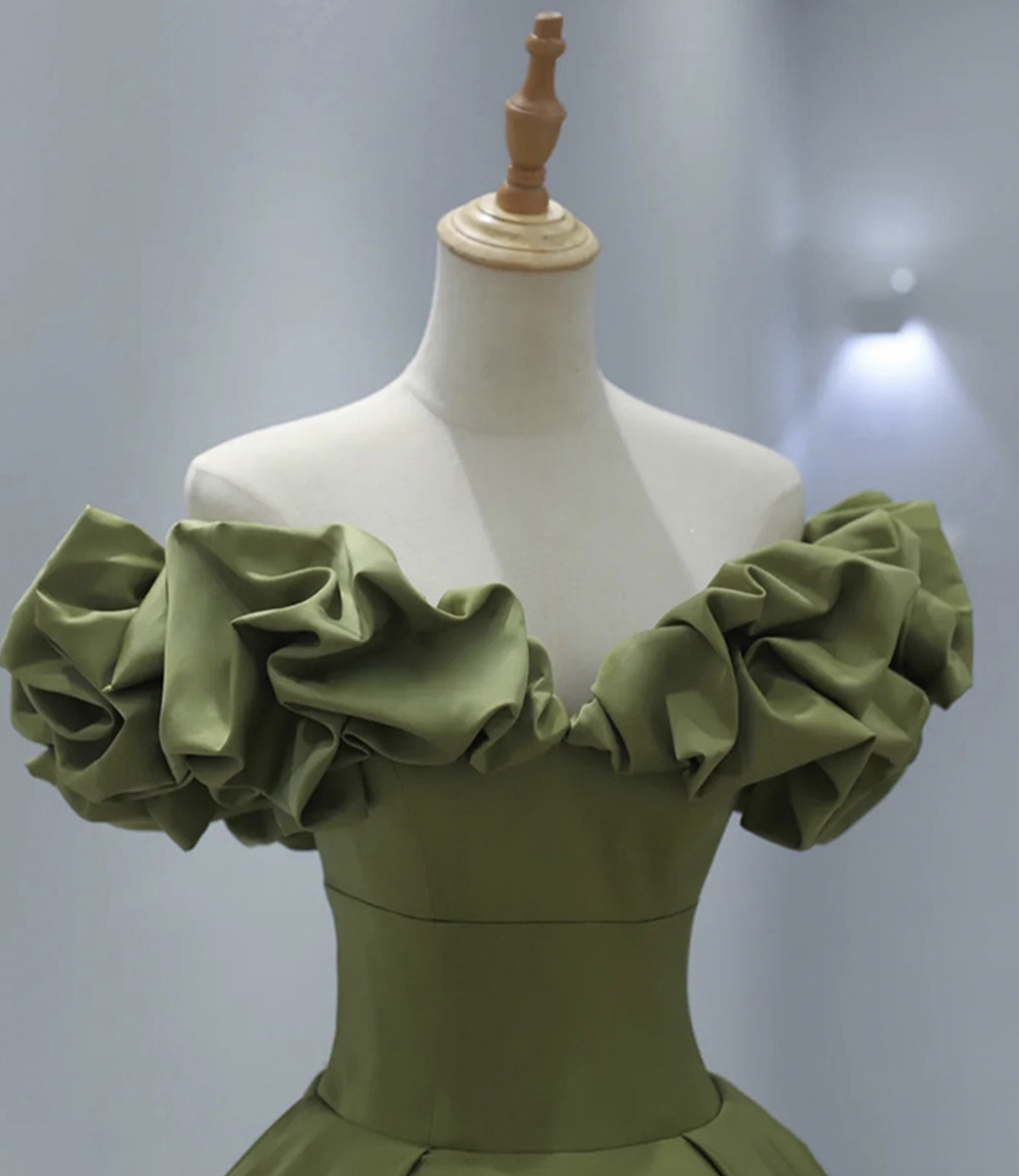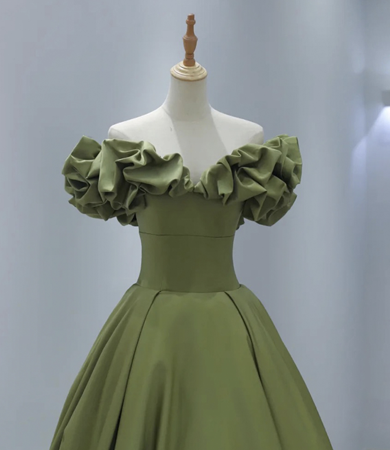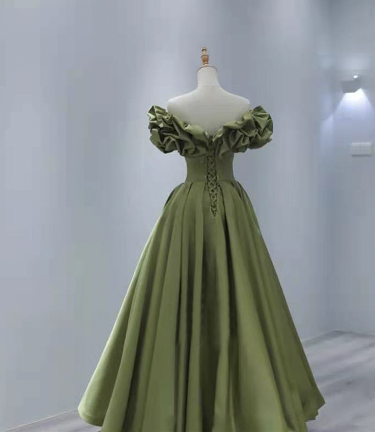 - Green satin long A line prom dress evening dress -