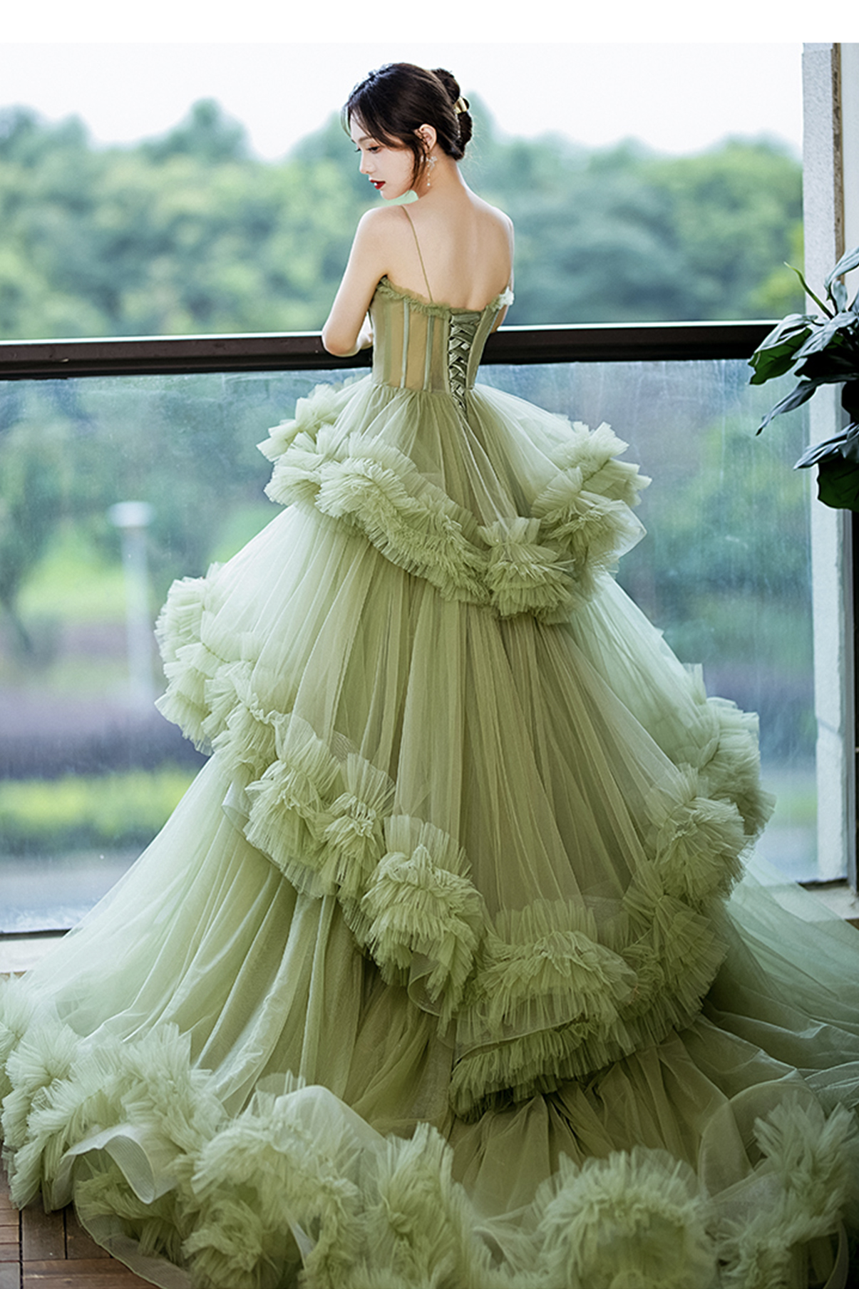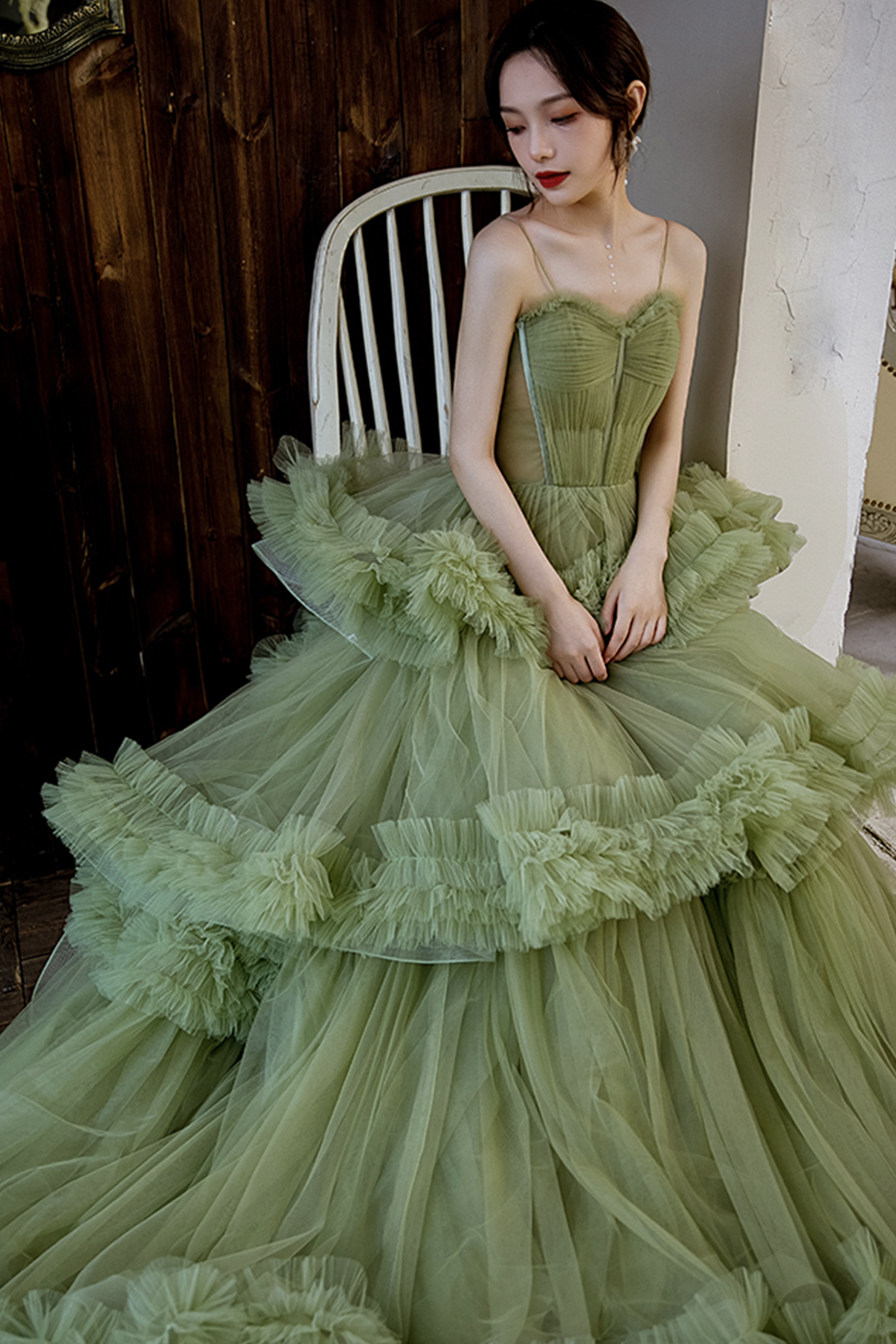 - Green Tulle Long A Line Prom Dress Green Evening Dress -