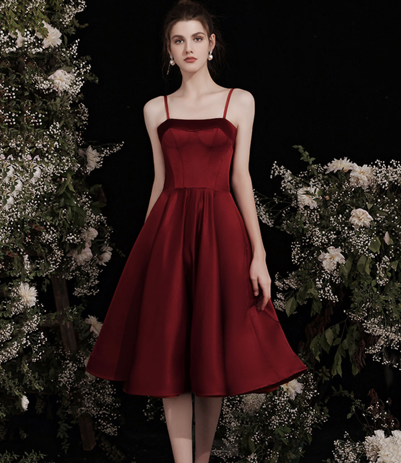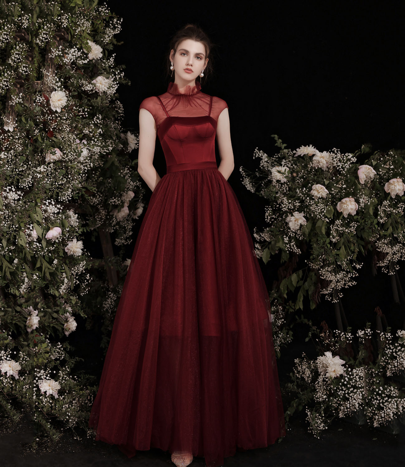 - Cute burgundy two pieces detachable prom dresses -