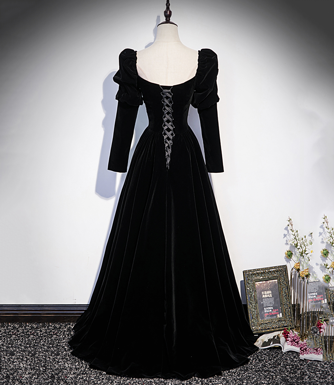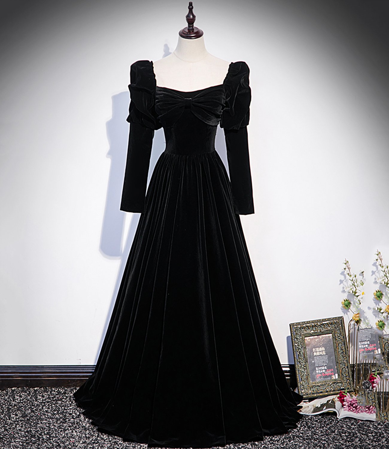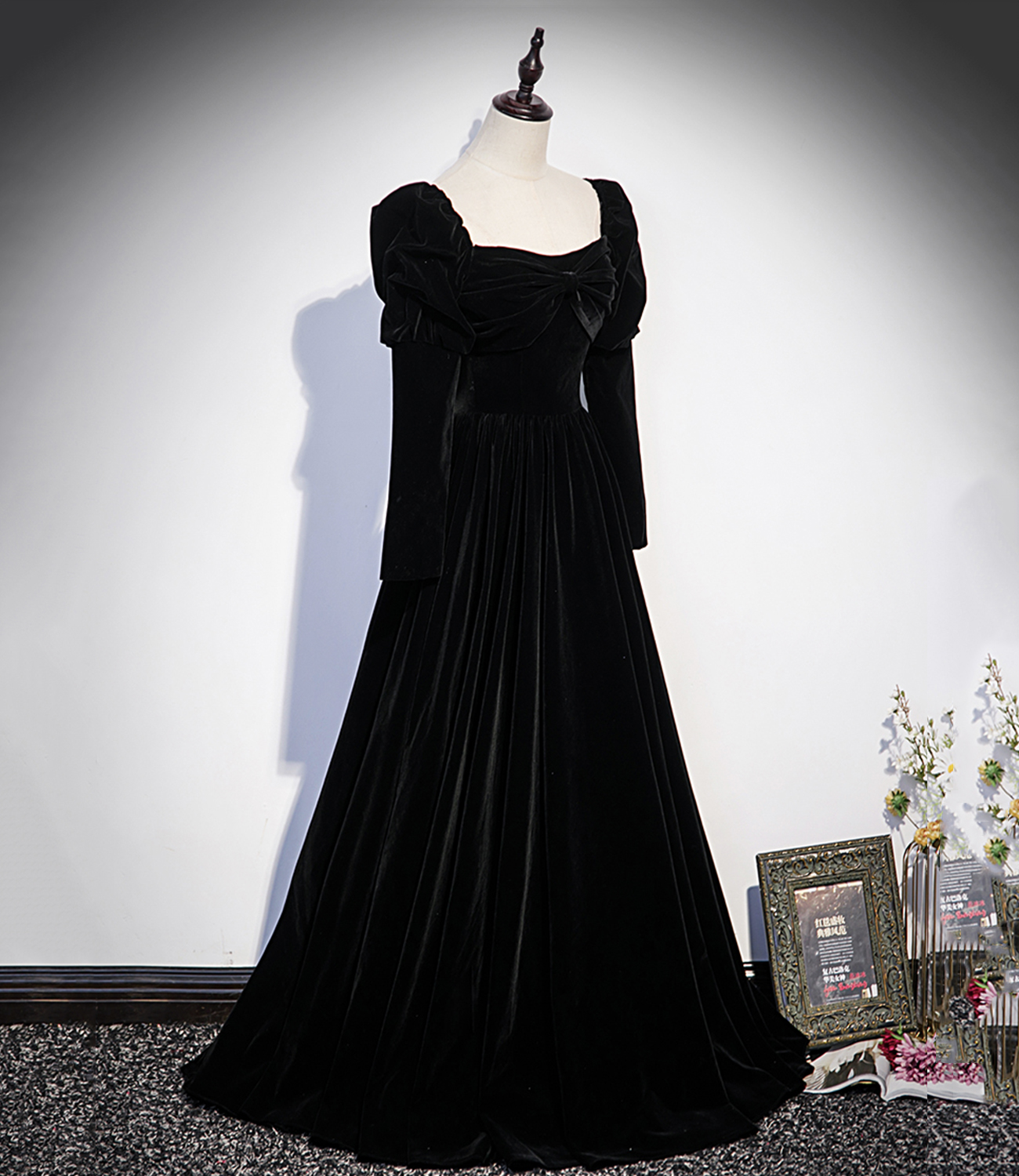 - Elegant velvet long sleeve prom dress A line evening dress -