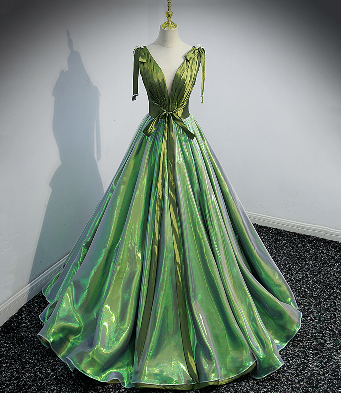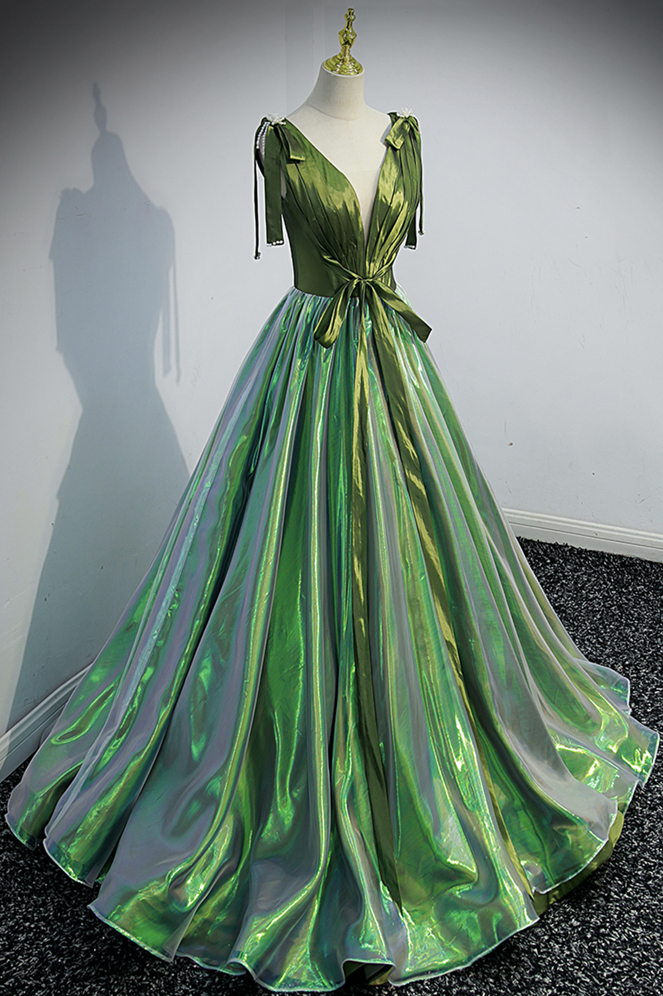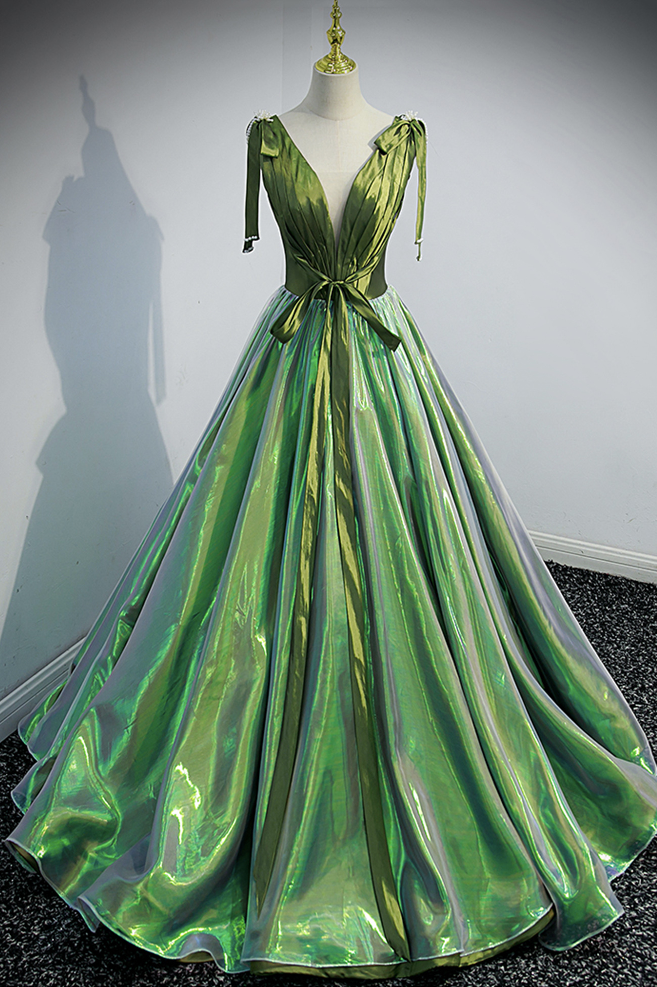 - Green Fluorescent Long Prom Dress A Line Evening Dress -