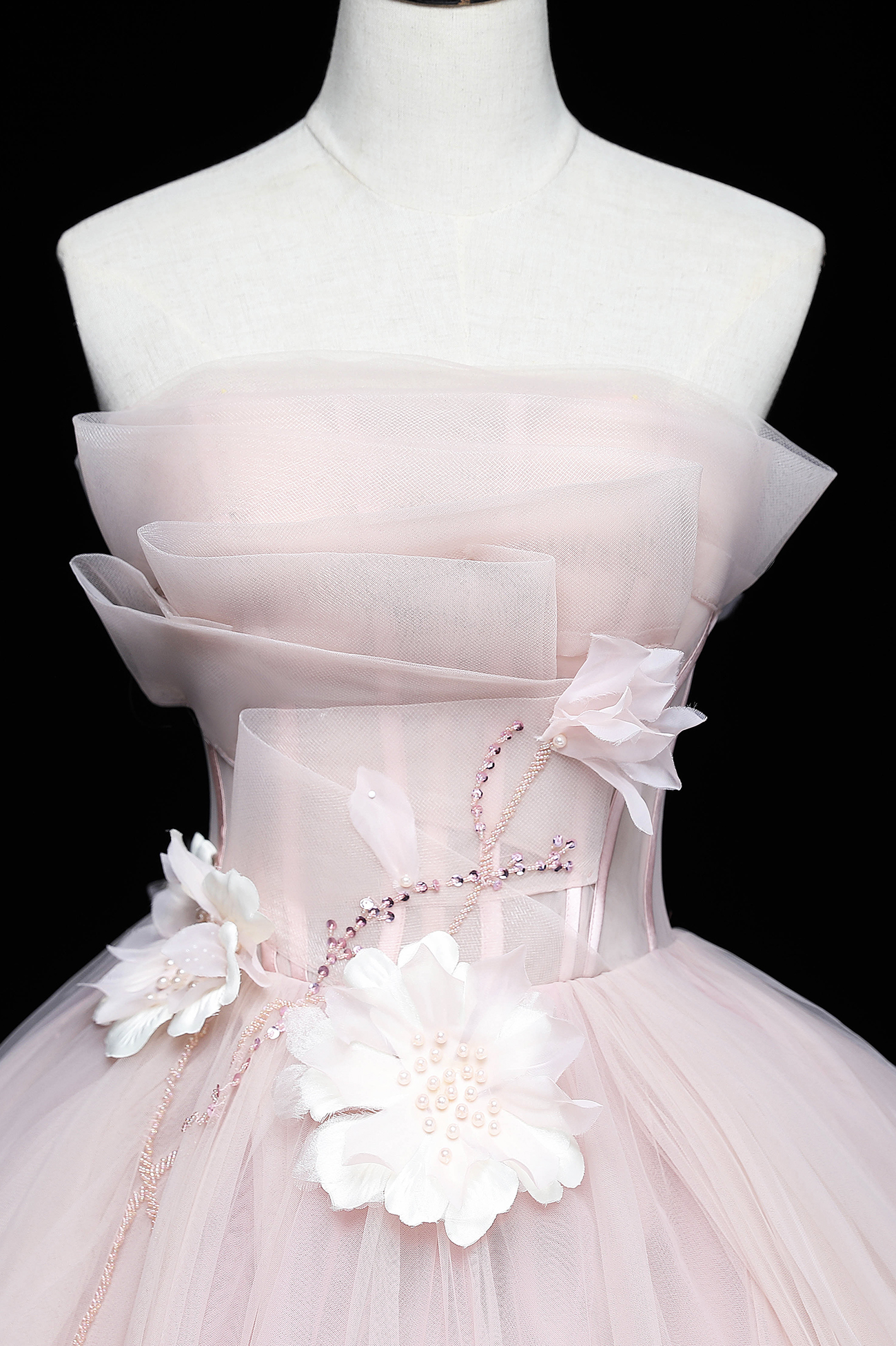 - Pink tulle applique long prom dress pink evening gown -
