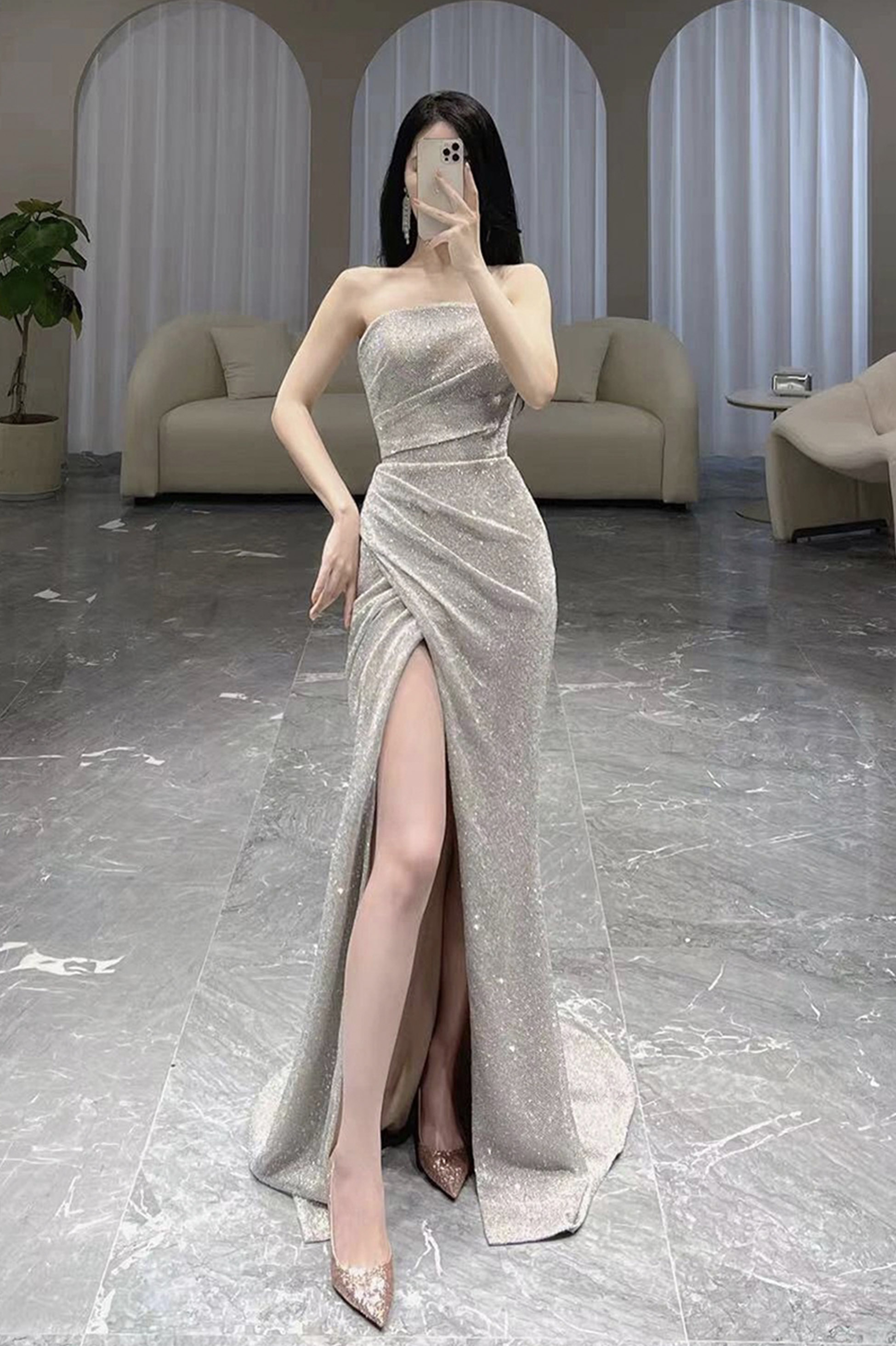 - Mermaid sequins long prom dress evening dress -