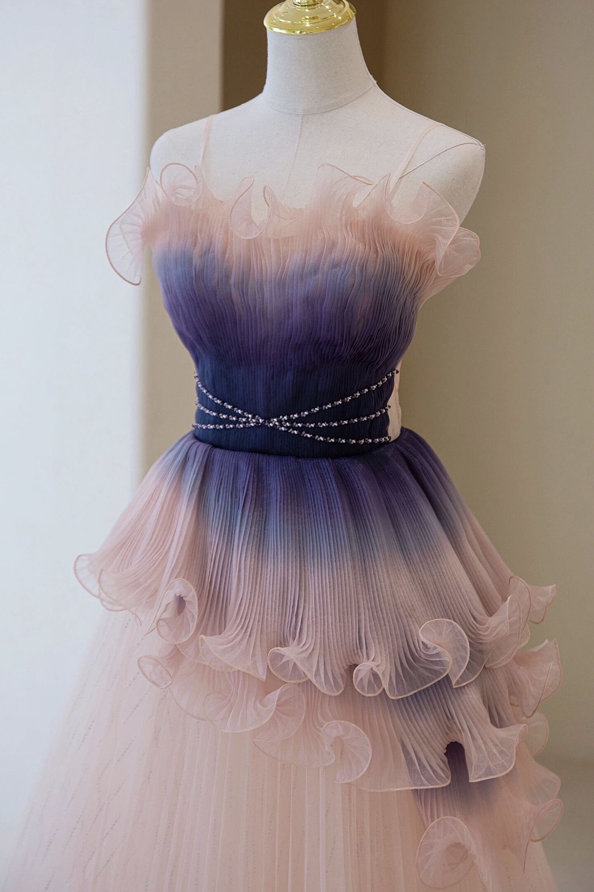 - Unique Pink Gradient Long Prom Dress A-line Evening Dress -