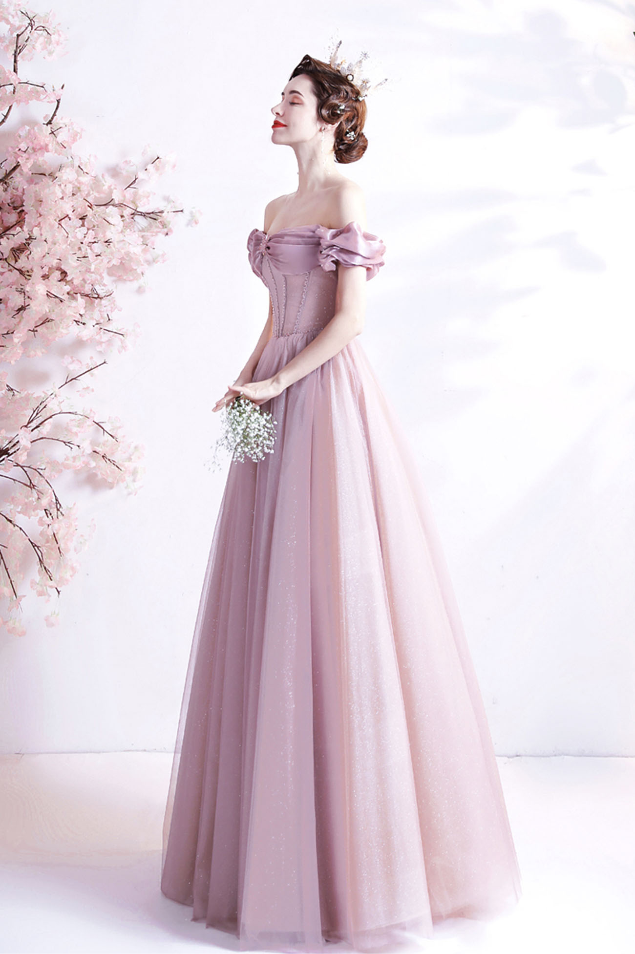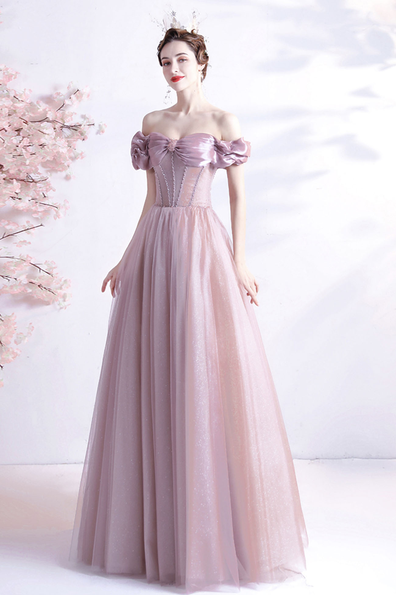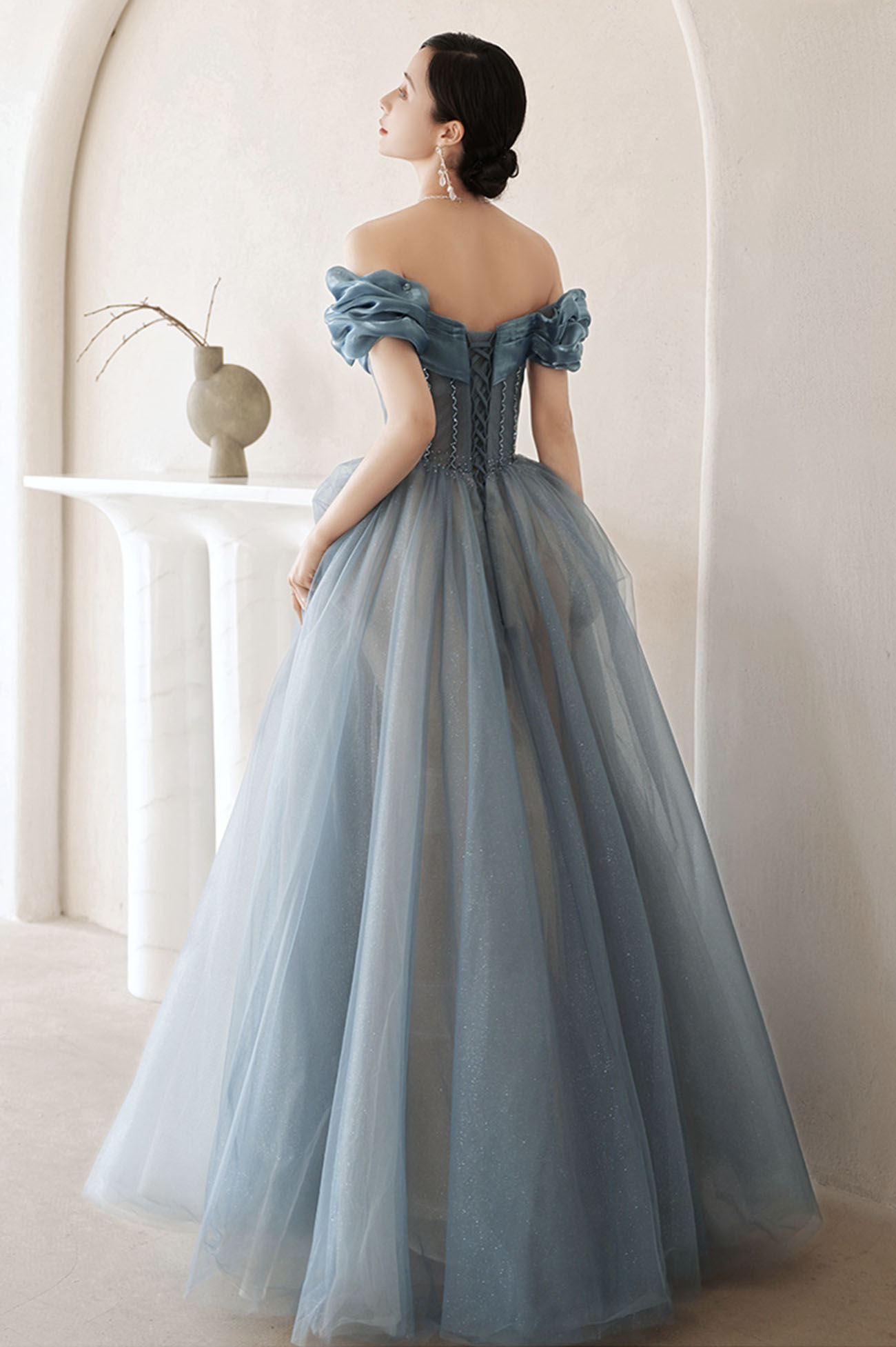 - Elegant tulle off shoulder prom dress A-line evening dress -