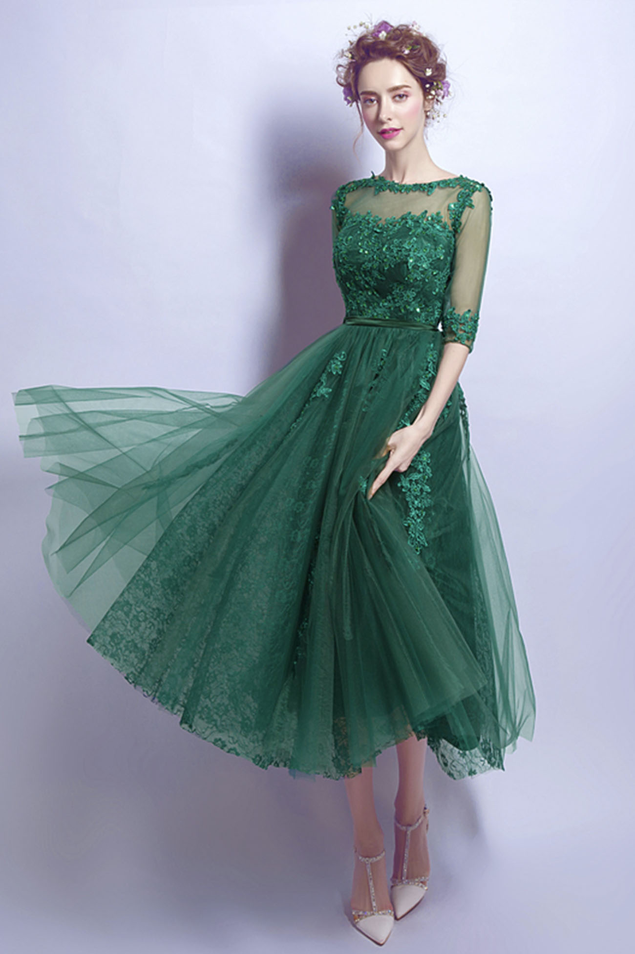 Green tulle lace short prom dress homecoming dress