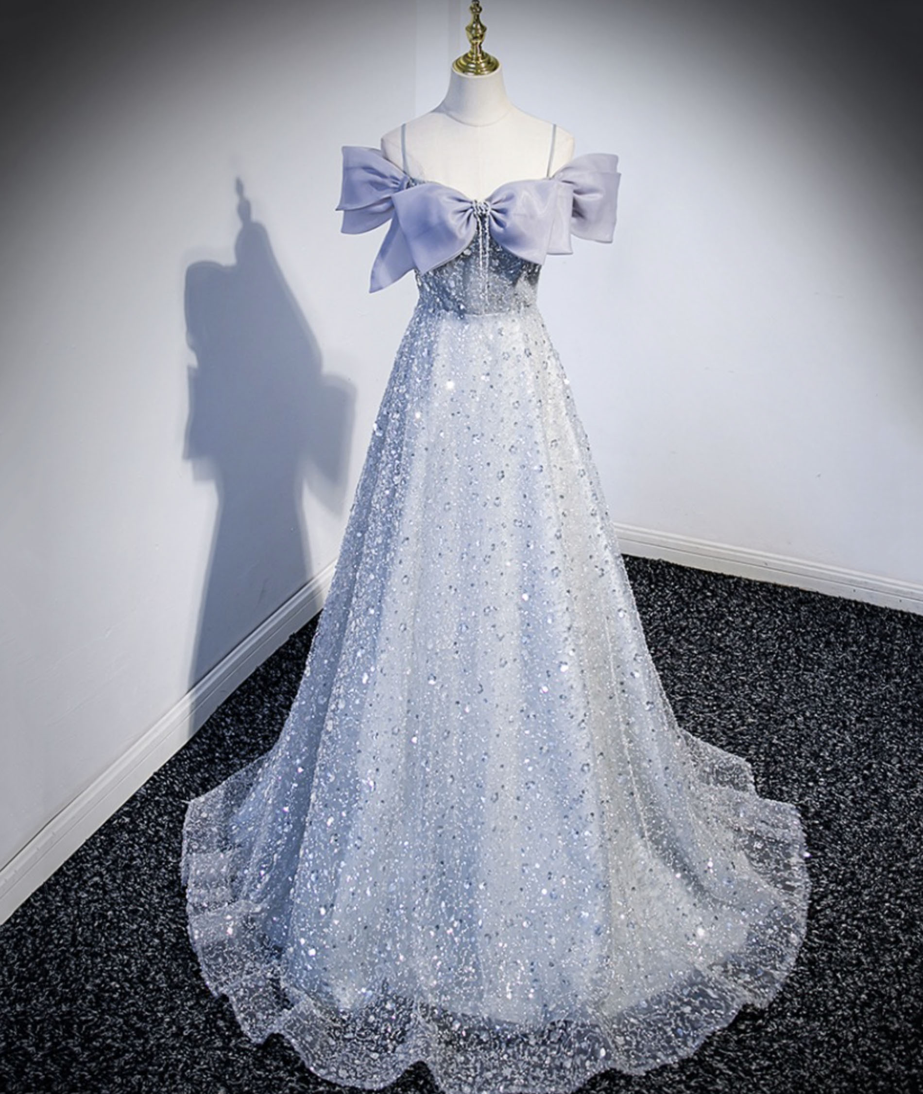 - Shiny Tulle Sequins Long Prom Dress Evening Dress -