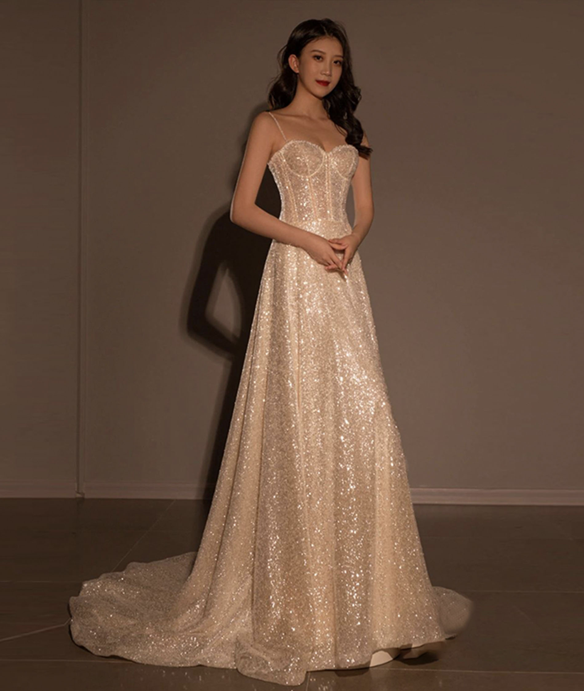 - Sparkling Sequin Long A-line Prom Dress Evening Dress -
