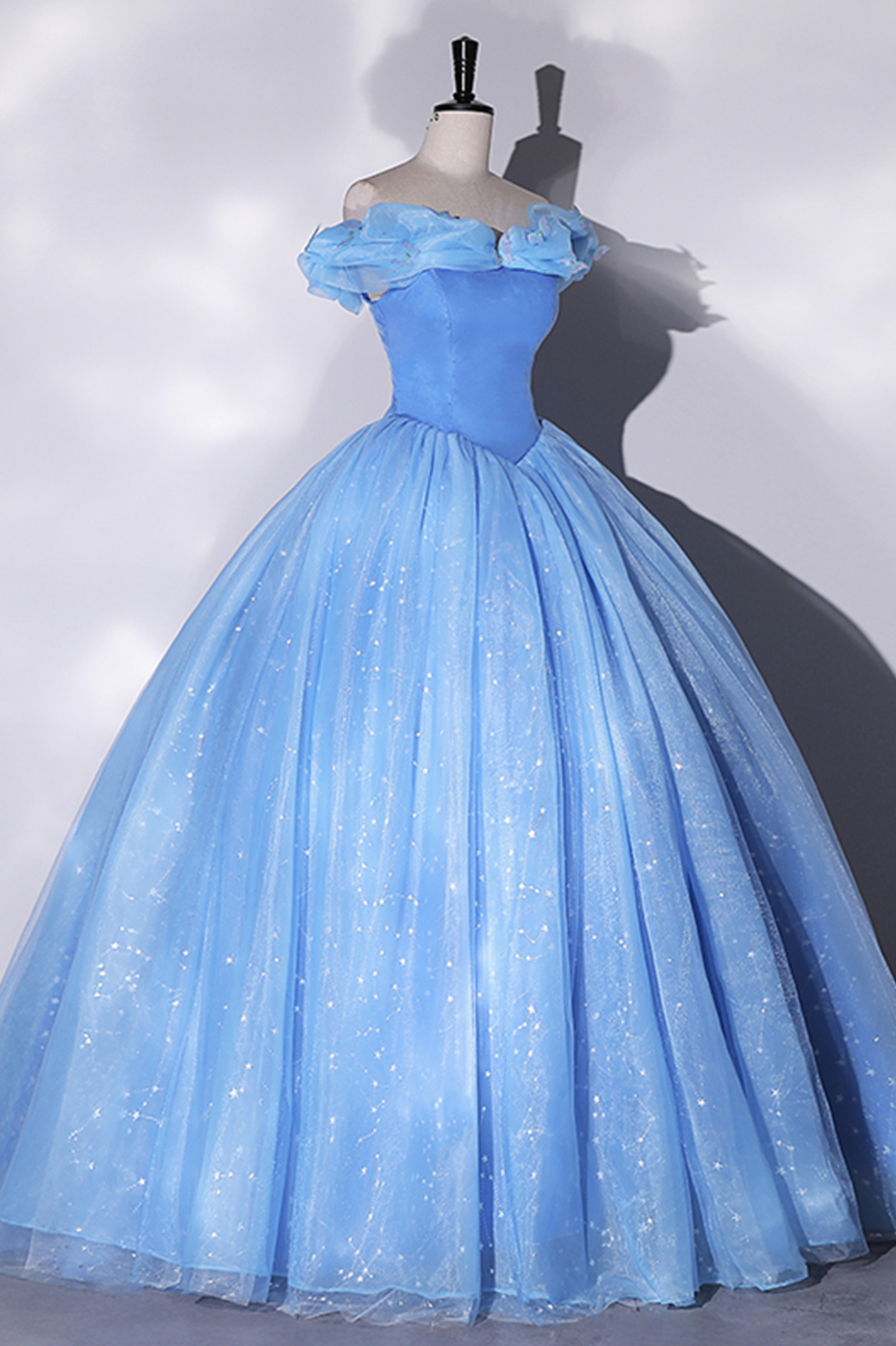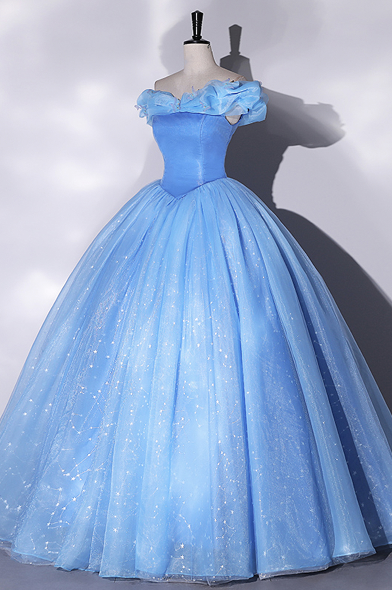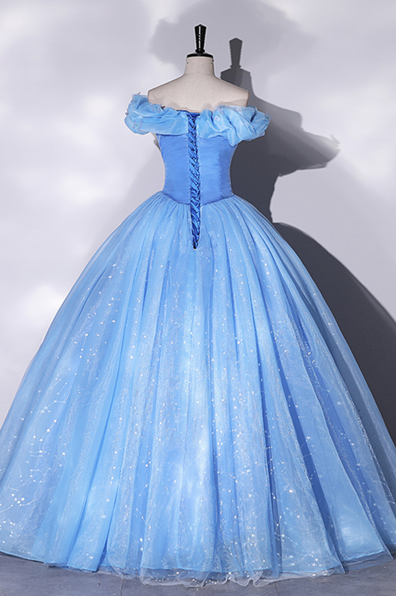 - Blue Tulle Long Prom Dress, A-Line Evening Dress -