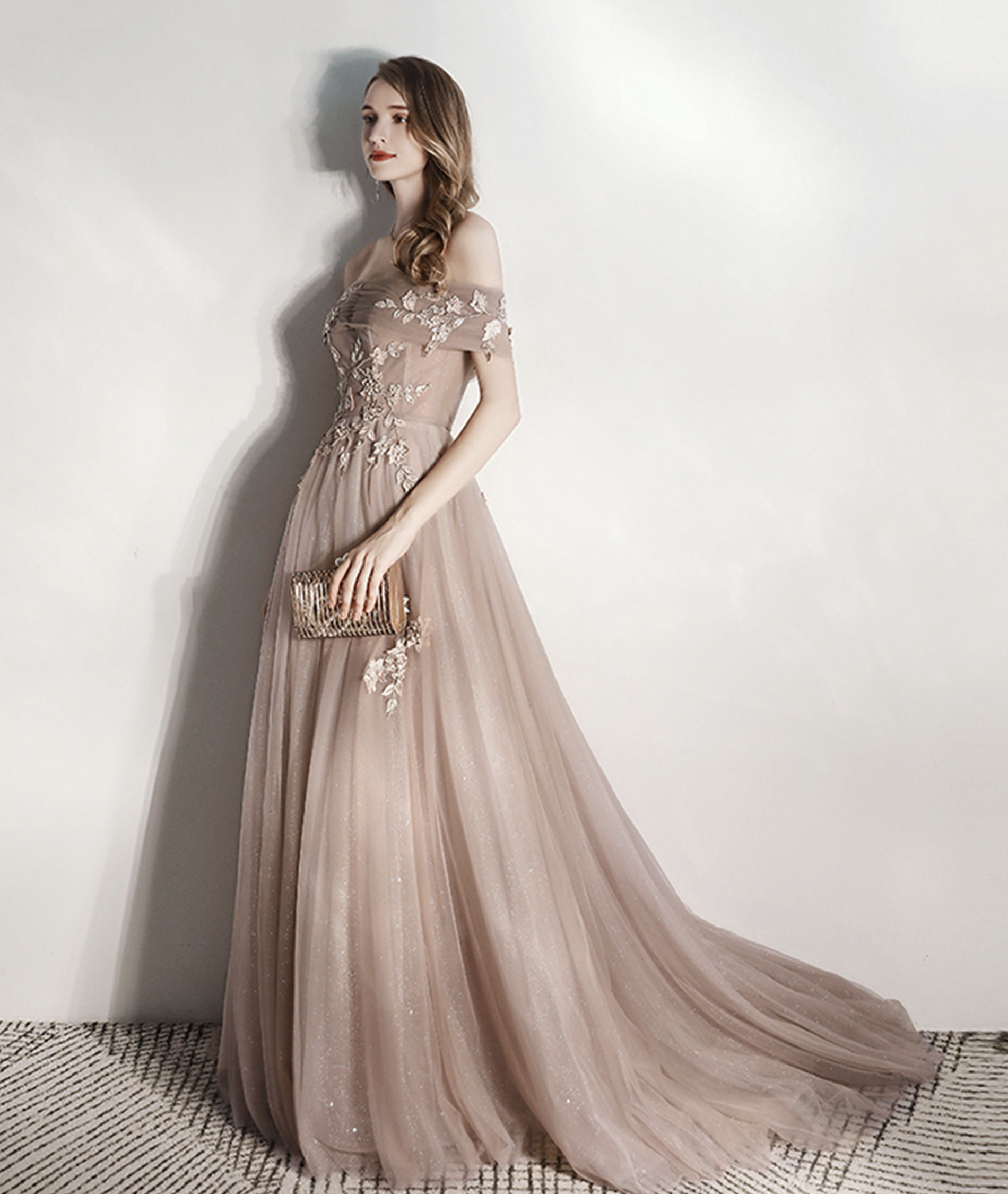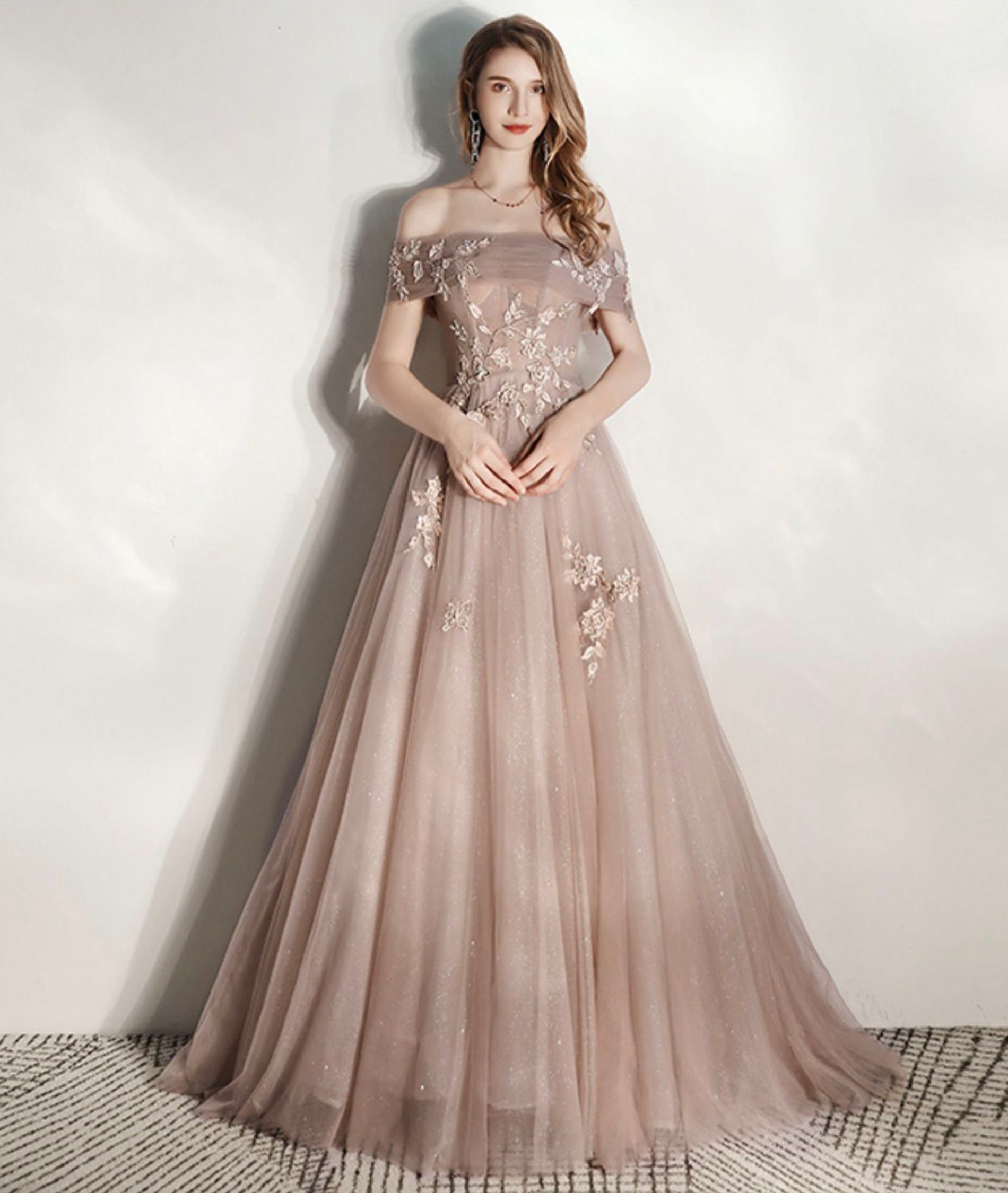 - Cute Tulle Lace Long Prom Dress, A-Line Evening Dress -