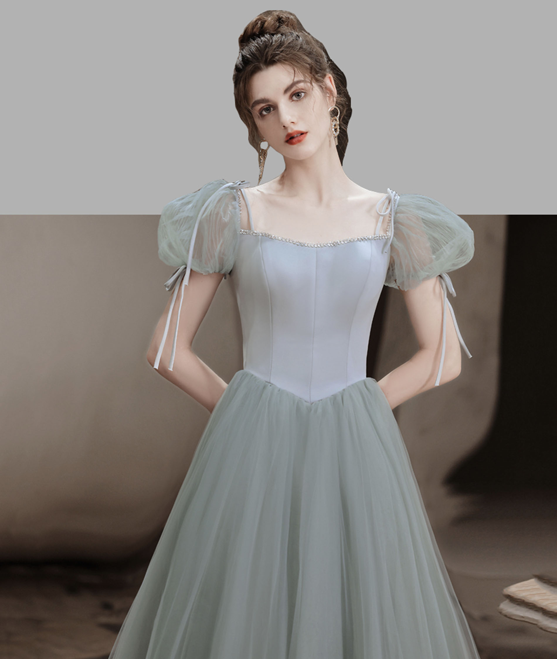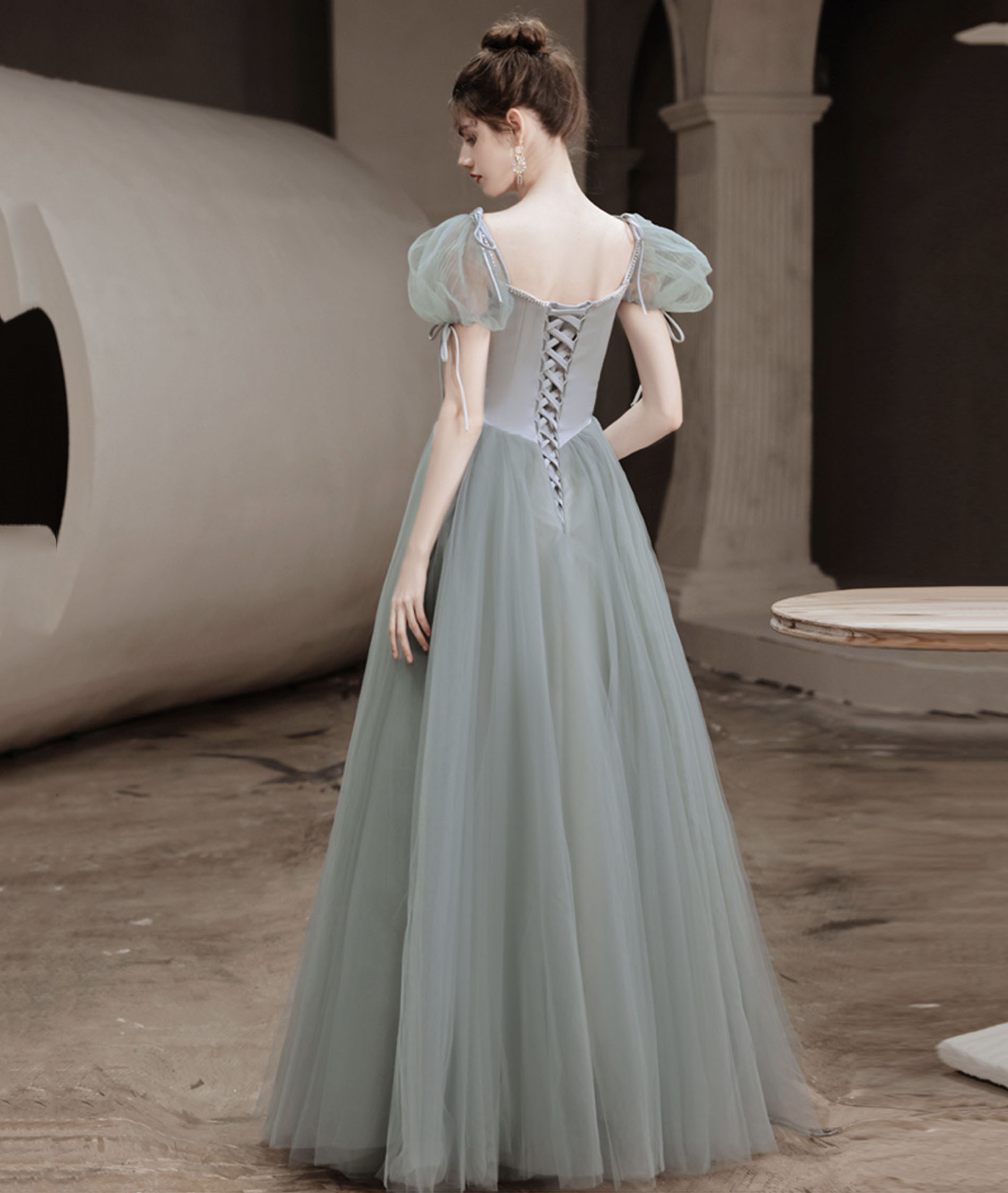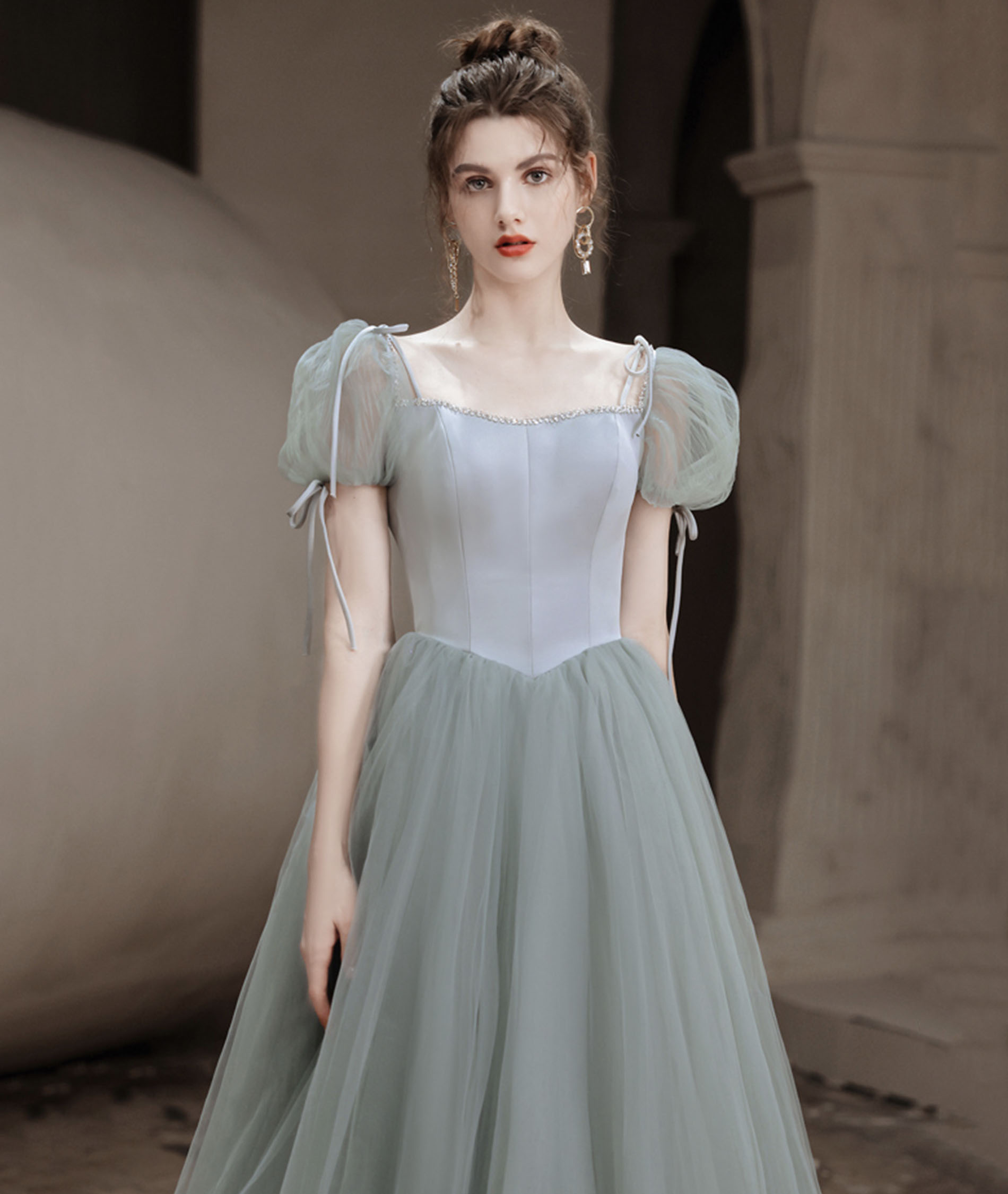- Green A-Line Tulle Long Prom Dress, Green Graduation Party Dress -