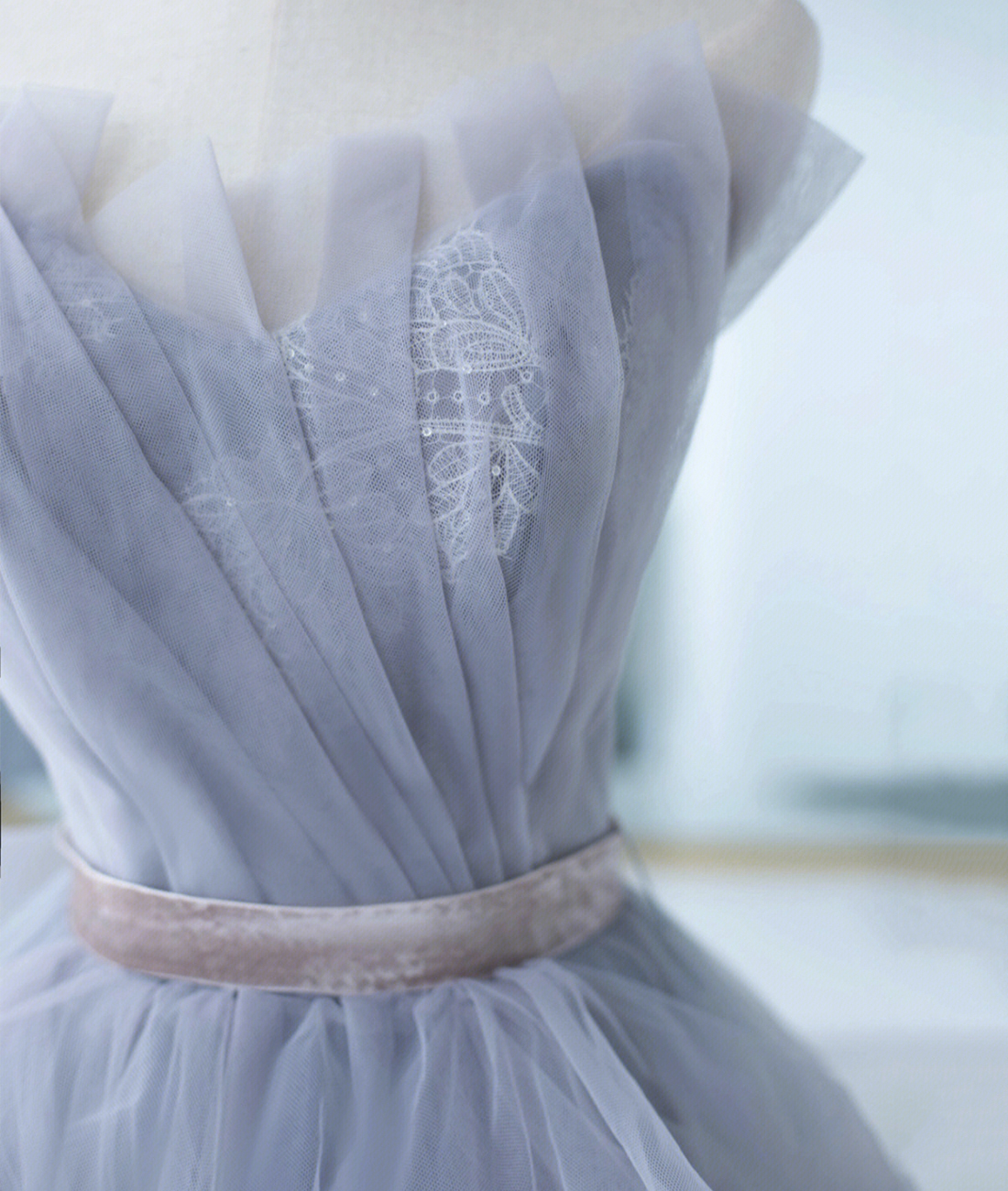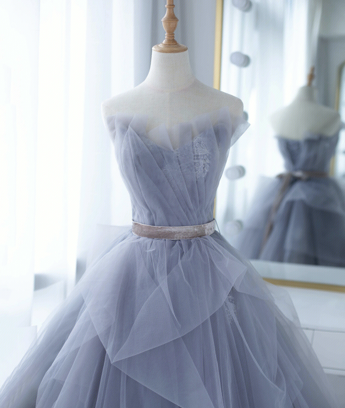 - Blue Strapless Lace Long Formal Dress, A-Line Evening Party Dress -