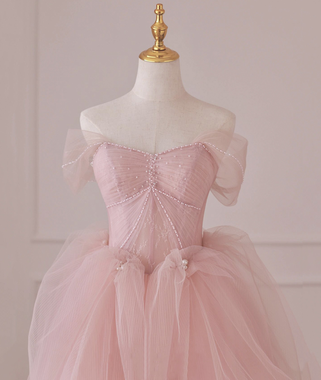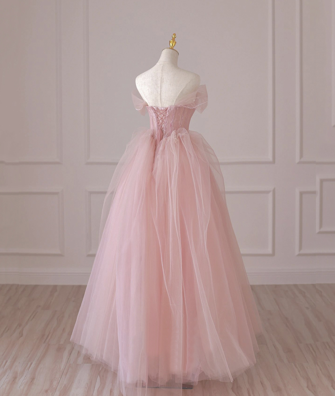 - Pink Tulle Long Prom Dress, Off the Shoulder Evening Dress -