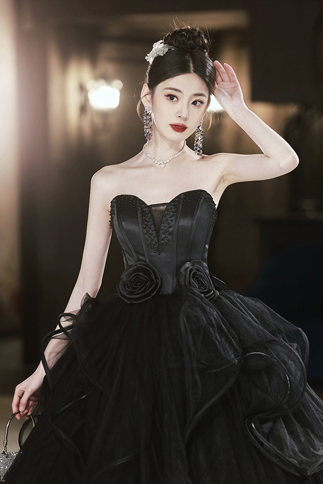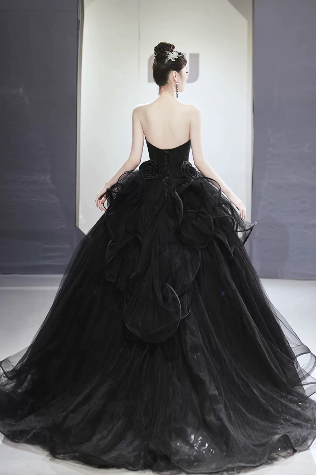 - Black Strapless Tulle Long A-Line Ball Gown -