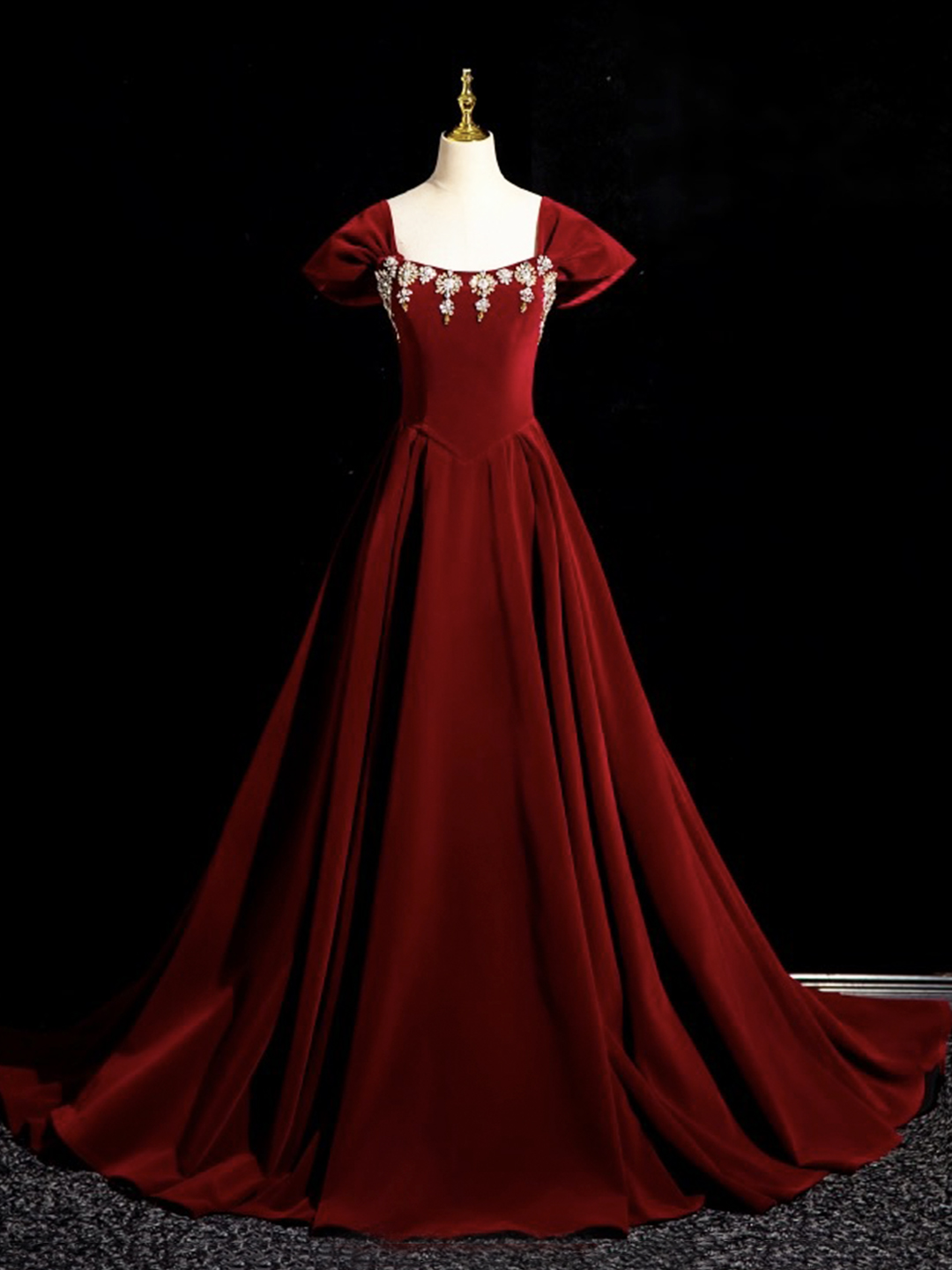 - Burgundy Velvet Long Prom dress -