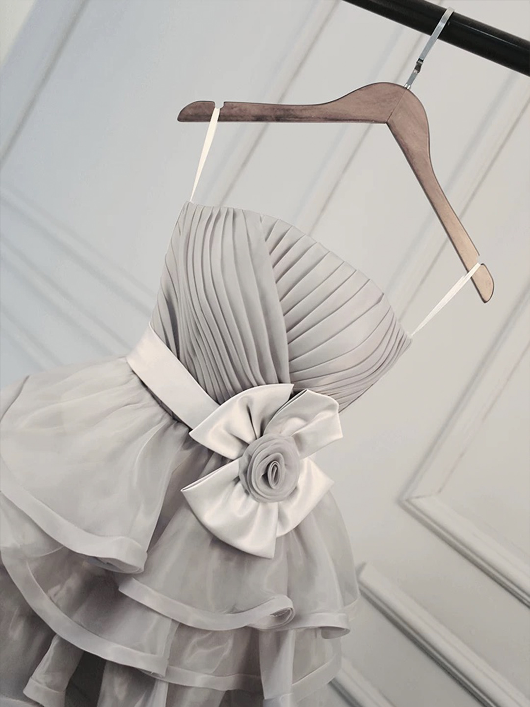 - Gray Tiered Tulle Knee Length Prom Party Dress -