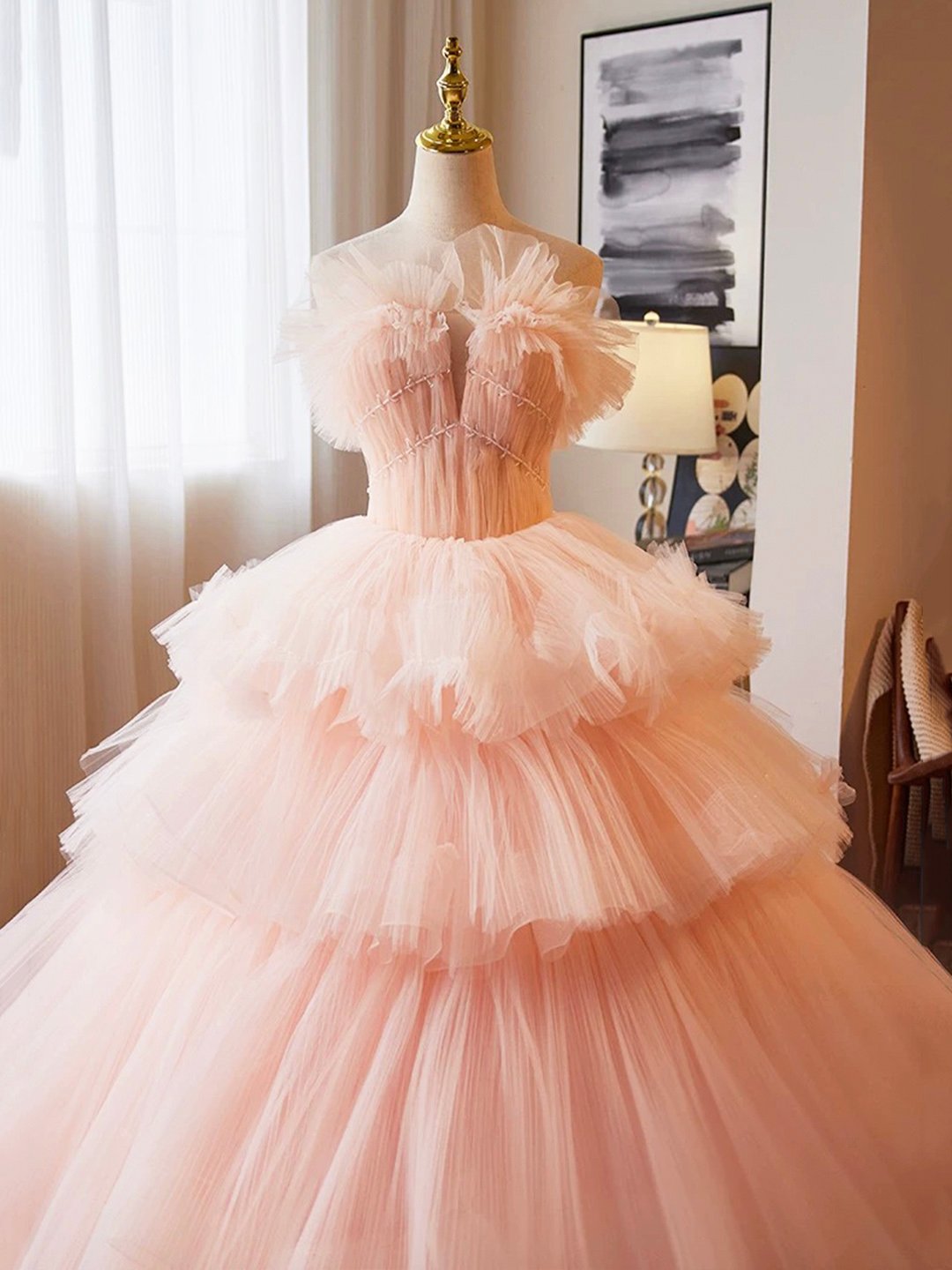- Beautiful Tulle Layers Ruffles Formal Evening Dress, Pink A-line Sweet 16 Dress -