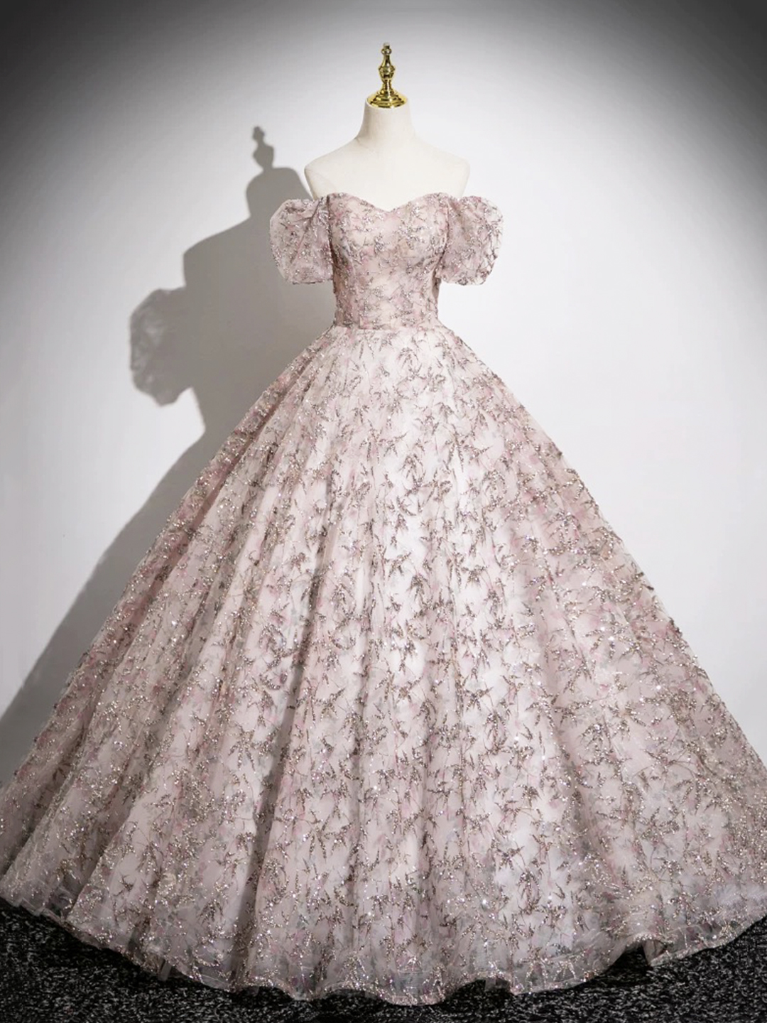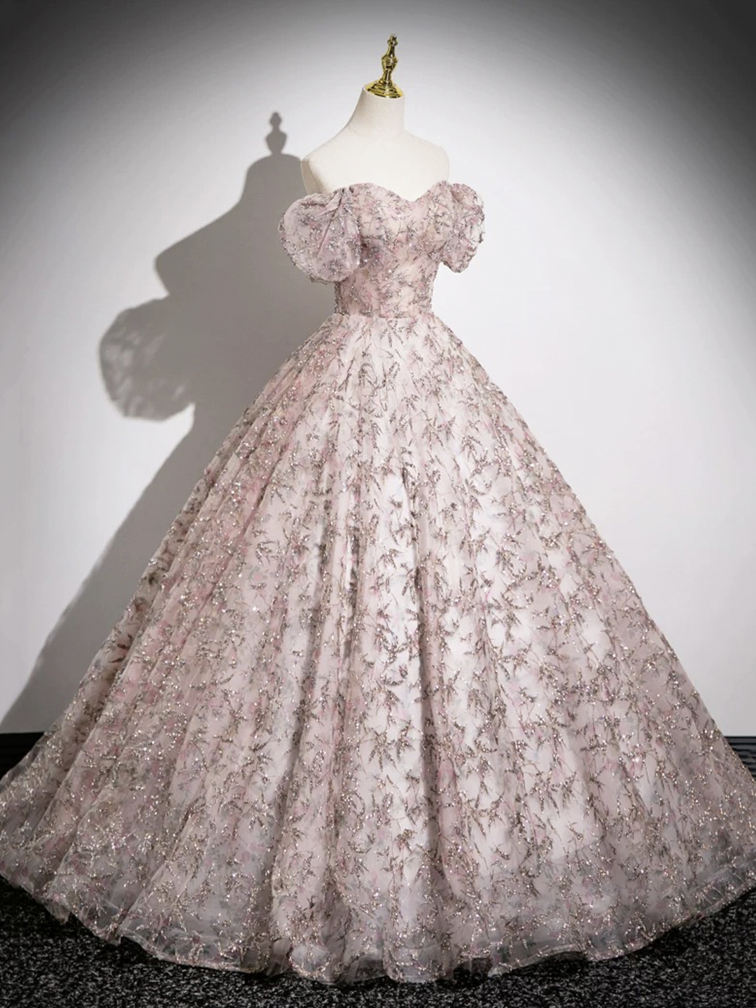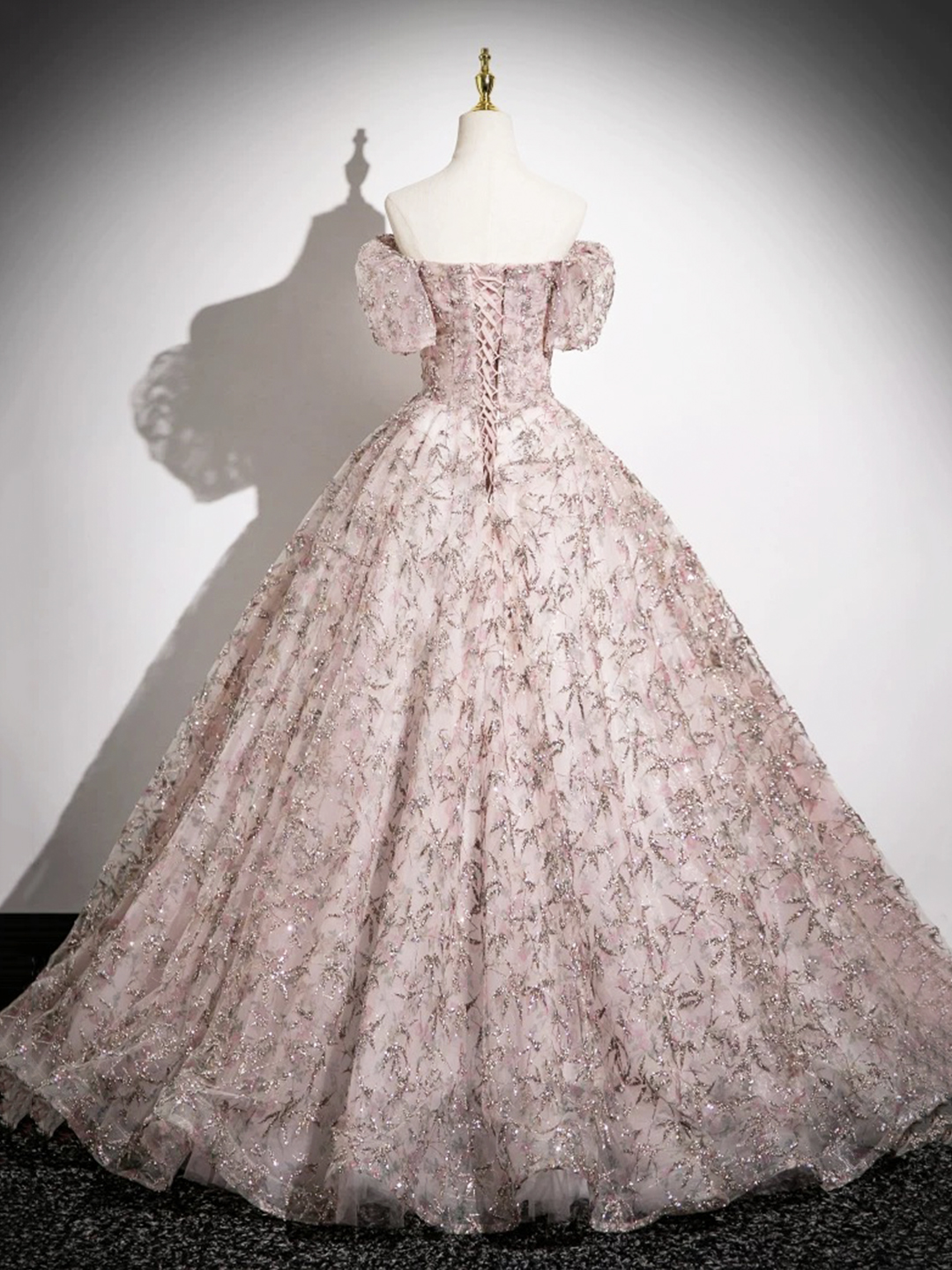 - Pink Tulle Long Prom Dress, A-Line Off the Shoulder Party Dress -