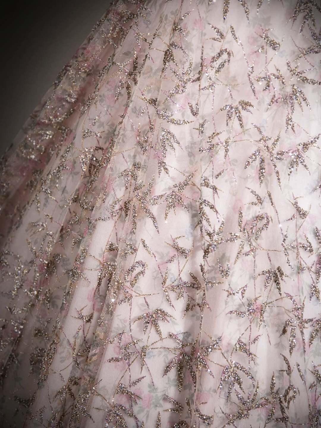 Pink Tulle Long Prom Dress, A-Line Off the Shoulder Party Dress