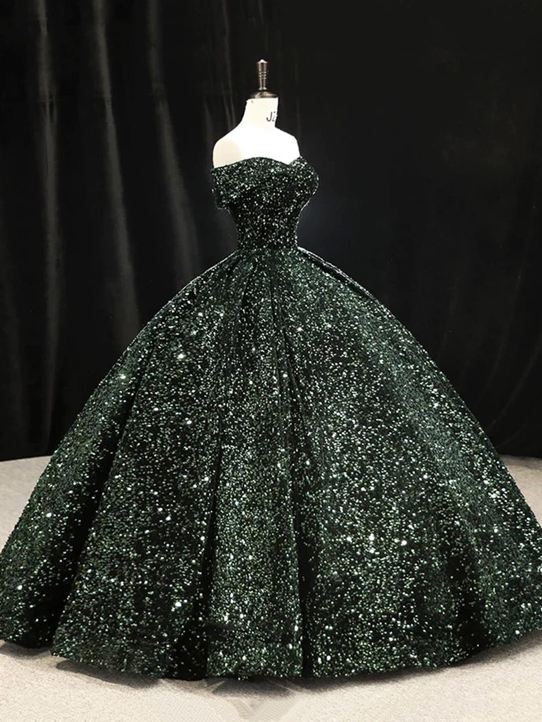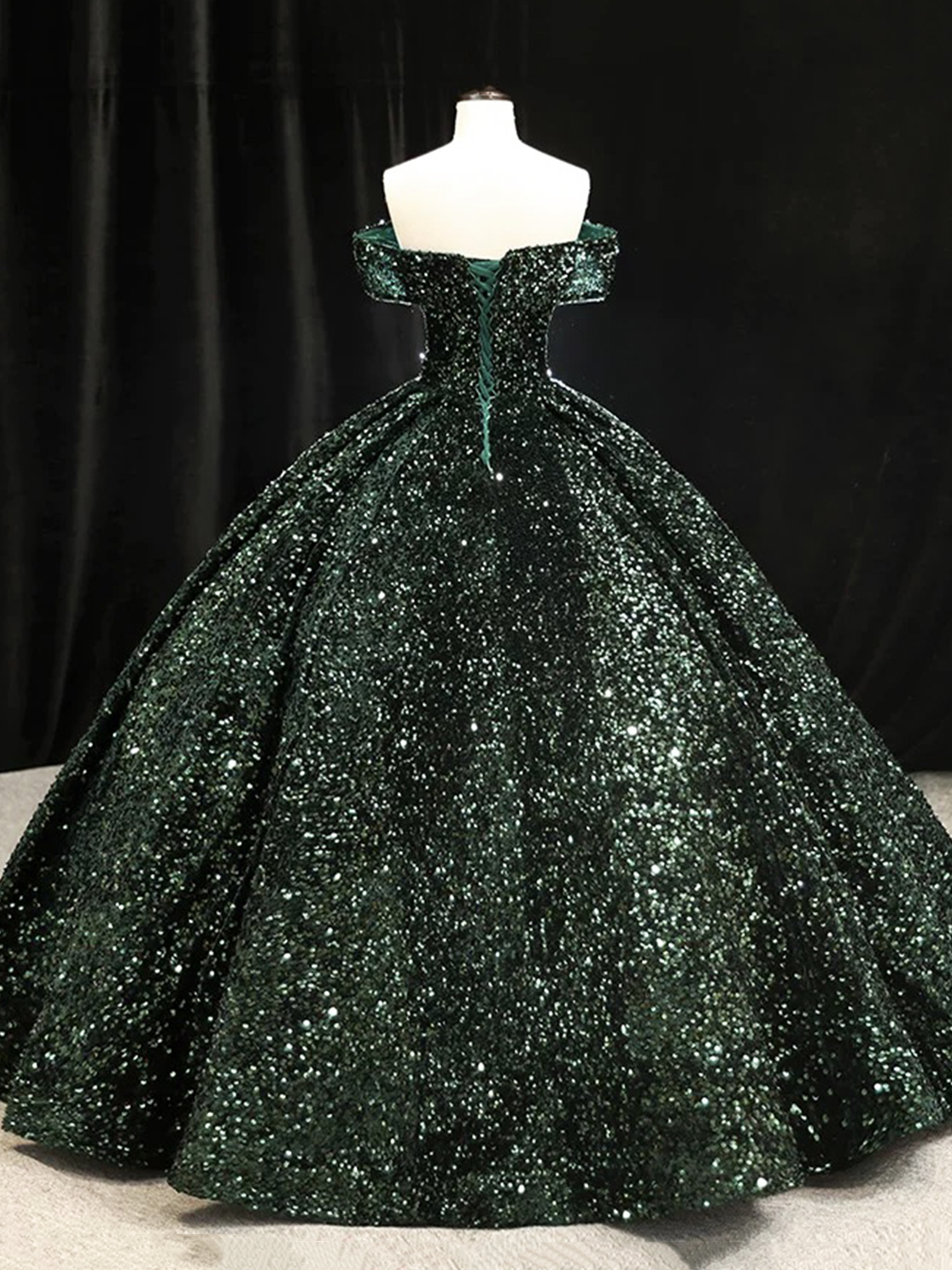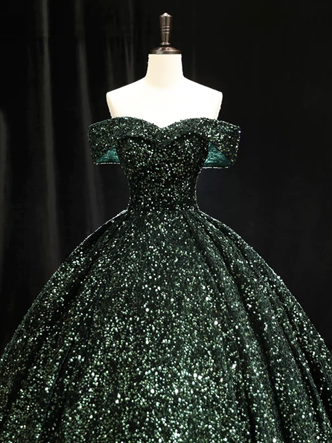 - Dark Green Sequins Long Formal Evening Dress -