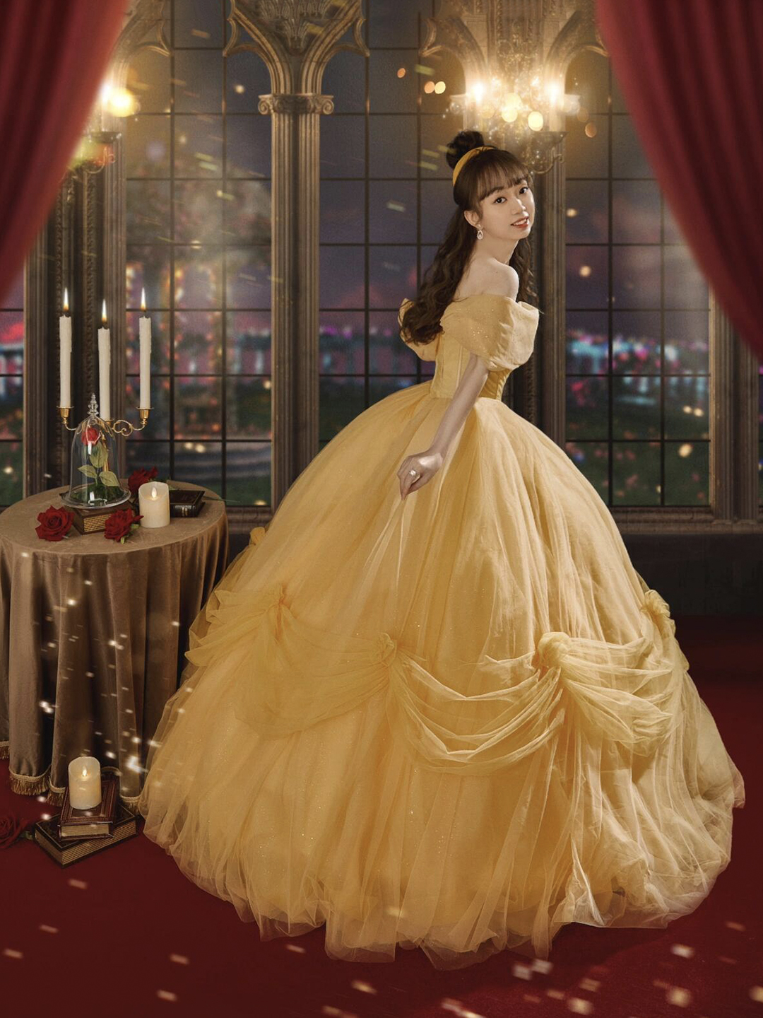 - Yellow Tulle Off the Shoulder Princess Prom Dress -