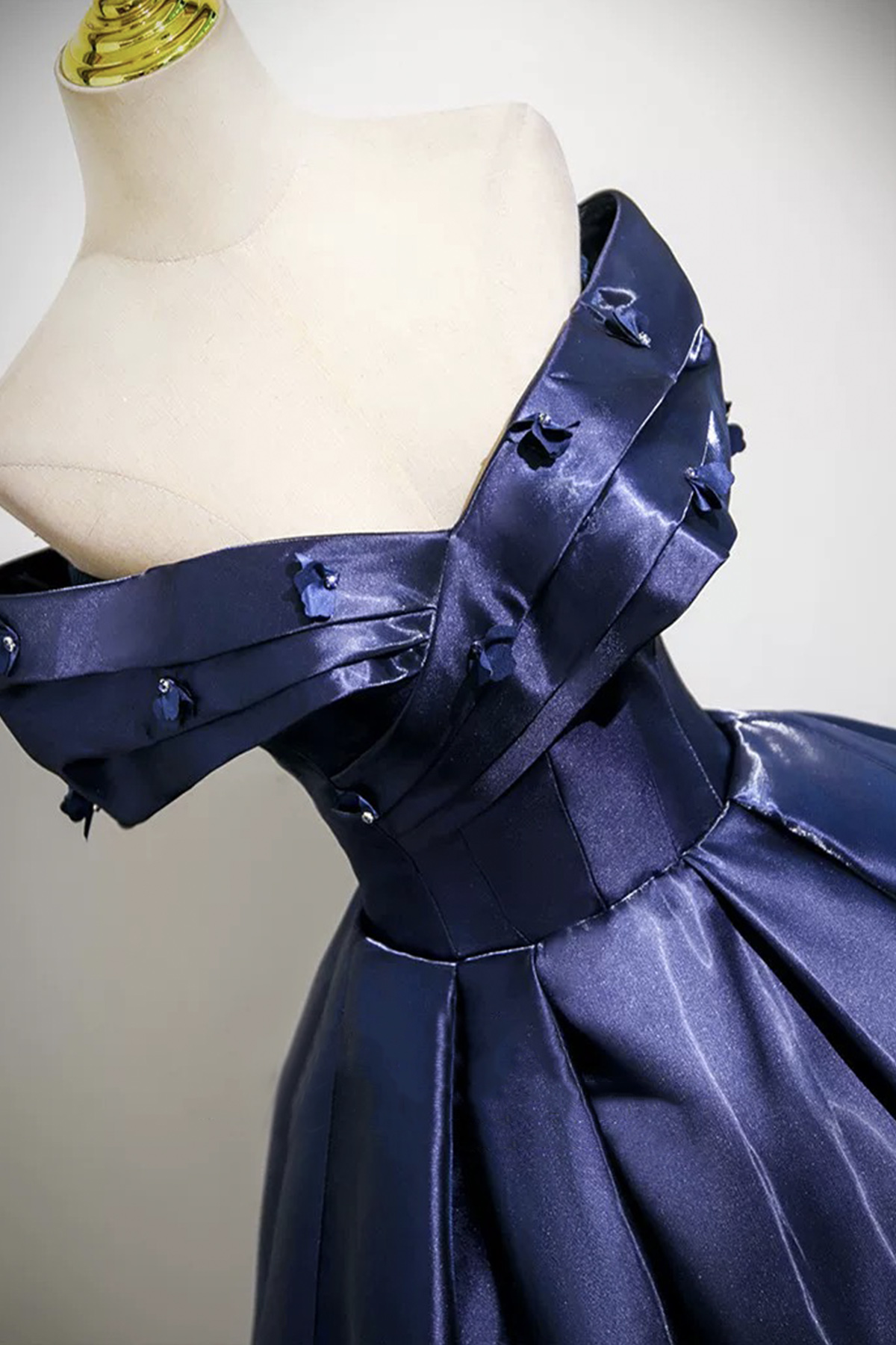 - Blue Satin Long Prom Dress, Elegant Off the Shoulder Party Dress -