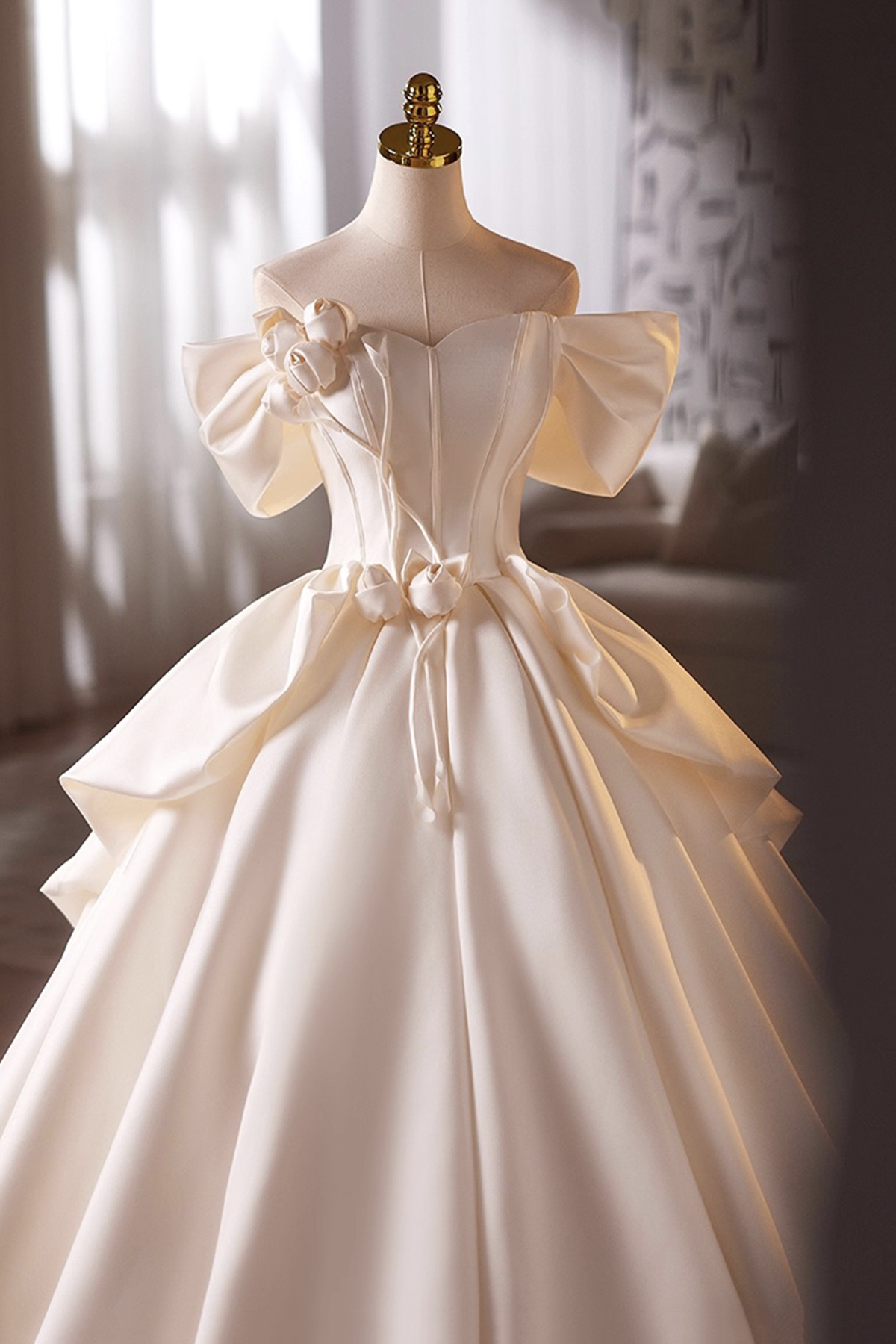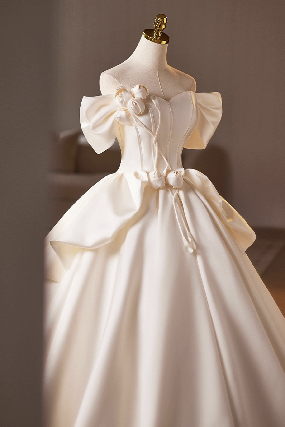 - White Satin Long Prom Dress, A-Line Sweetheart Neck Evening Party Dress -