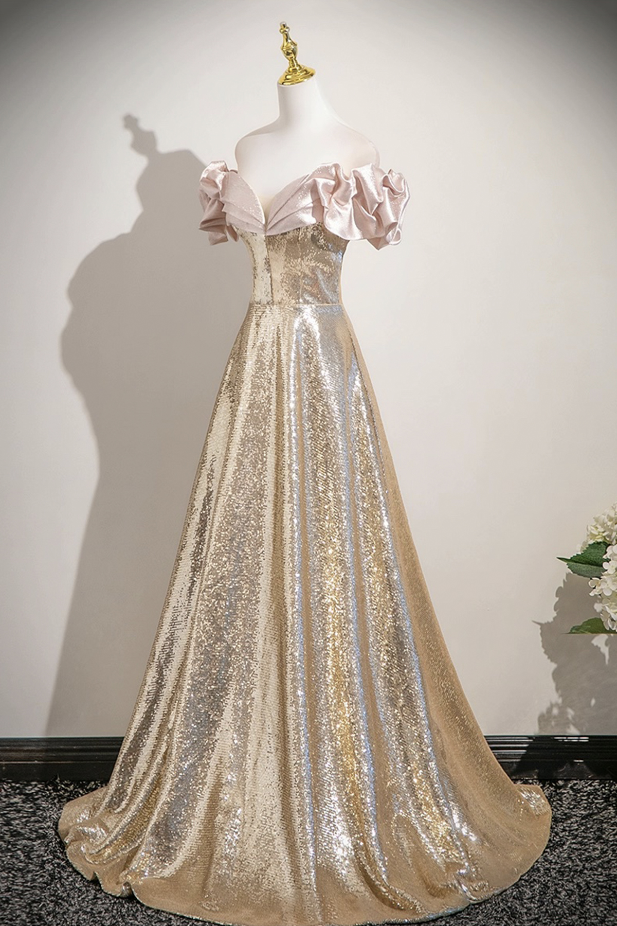 - Beautiful Sequins Long A-Line Prom Party Dress -