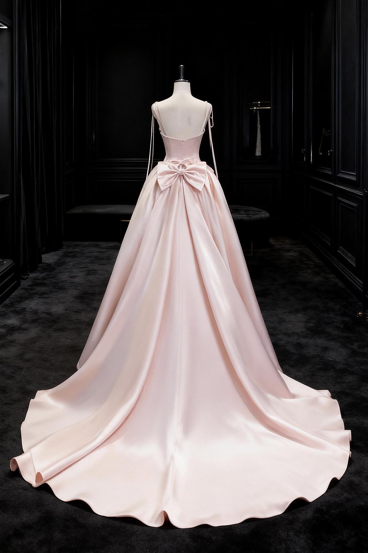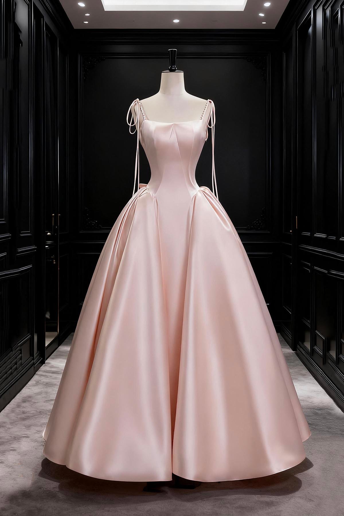- Pink Satin Long A-Line Prom Formal Gown -