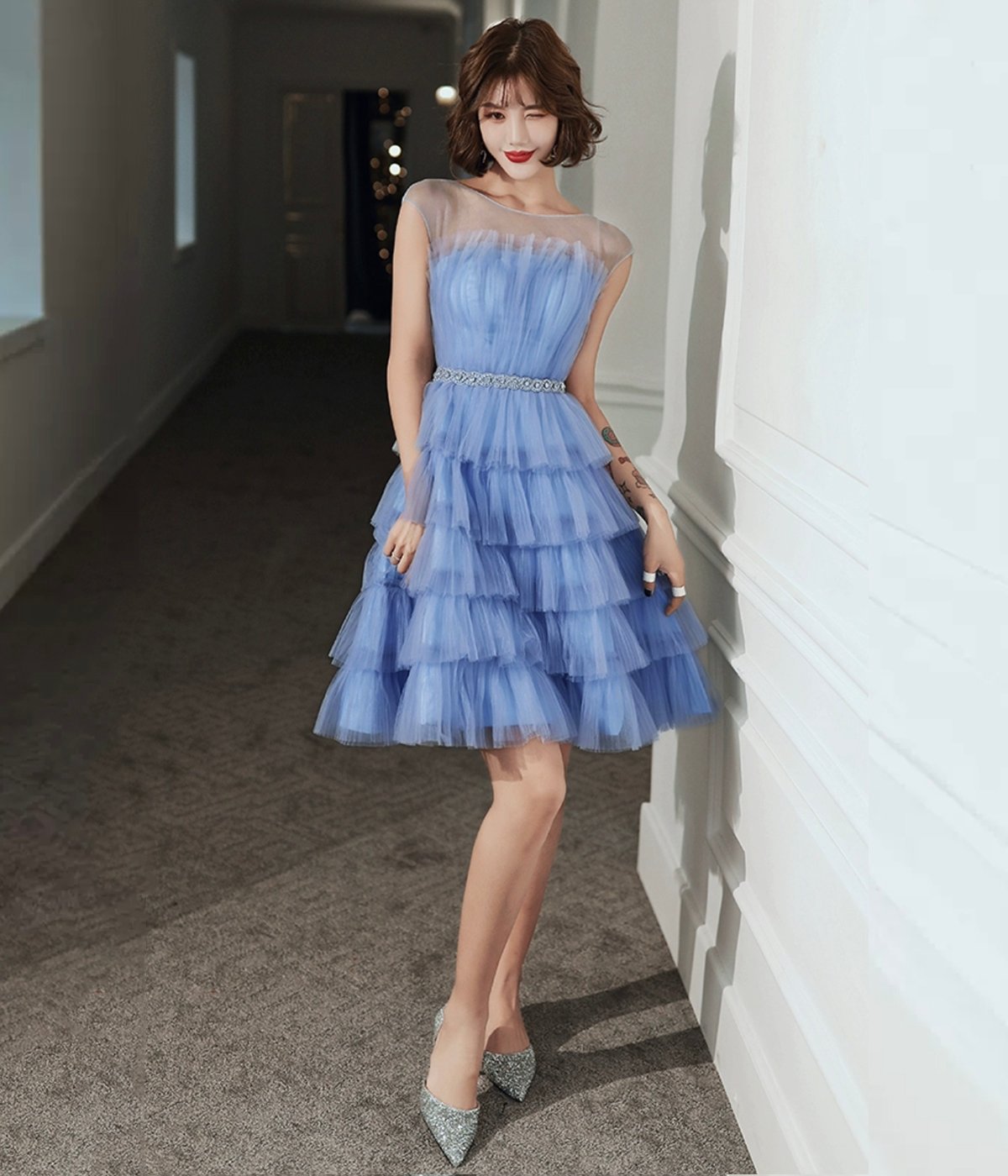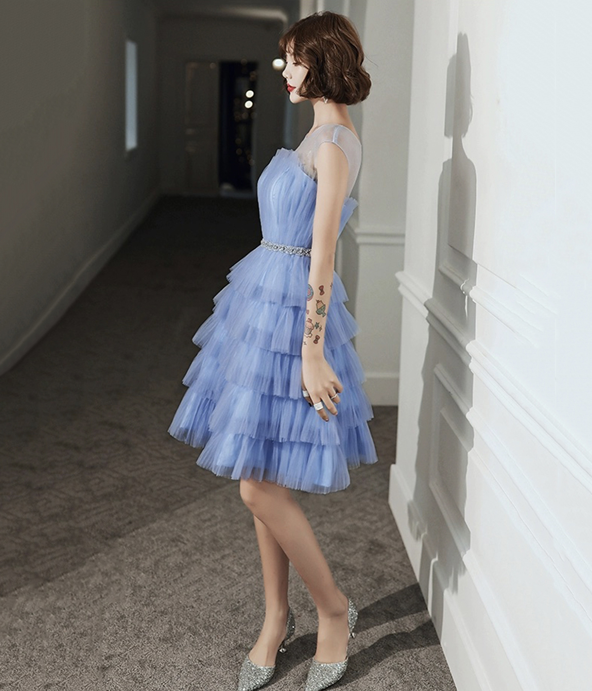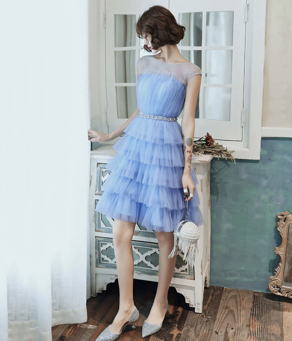- Blue Tulle Short Prom Dress, Cute Layered Blue Party Dress -