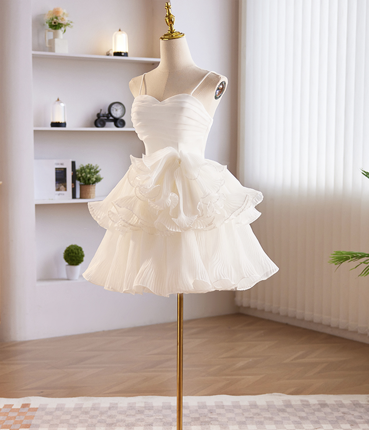 - White Spaghetti Strap Tulle Party Dress, Cute A-Line Knee Length Prom Dress -