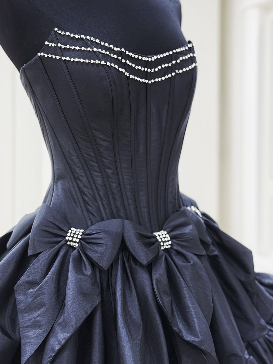 Strapless Black Ruffle Short Knee Length Party Dress with Bow