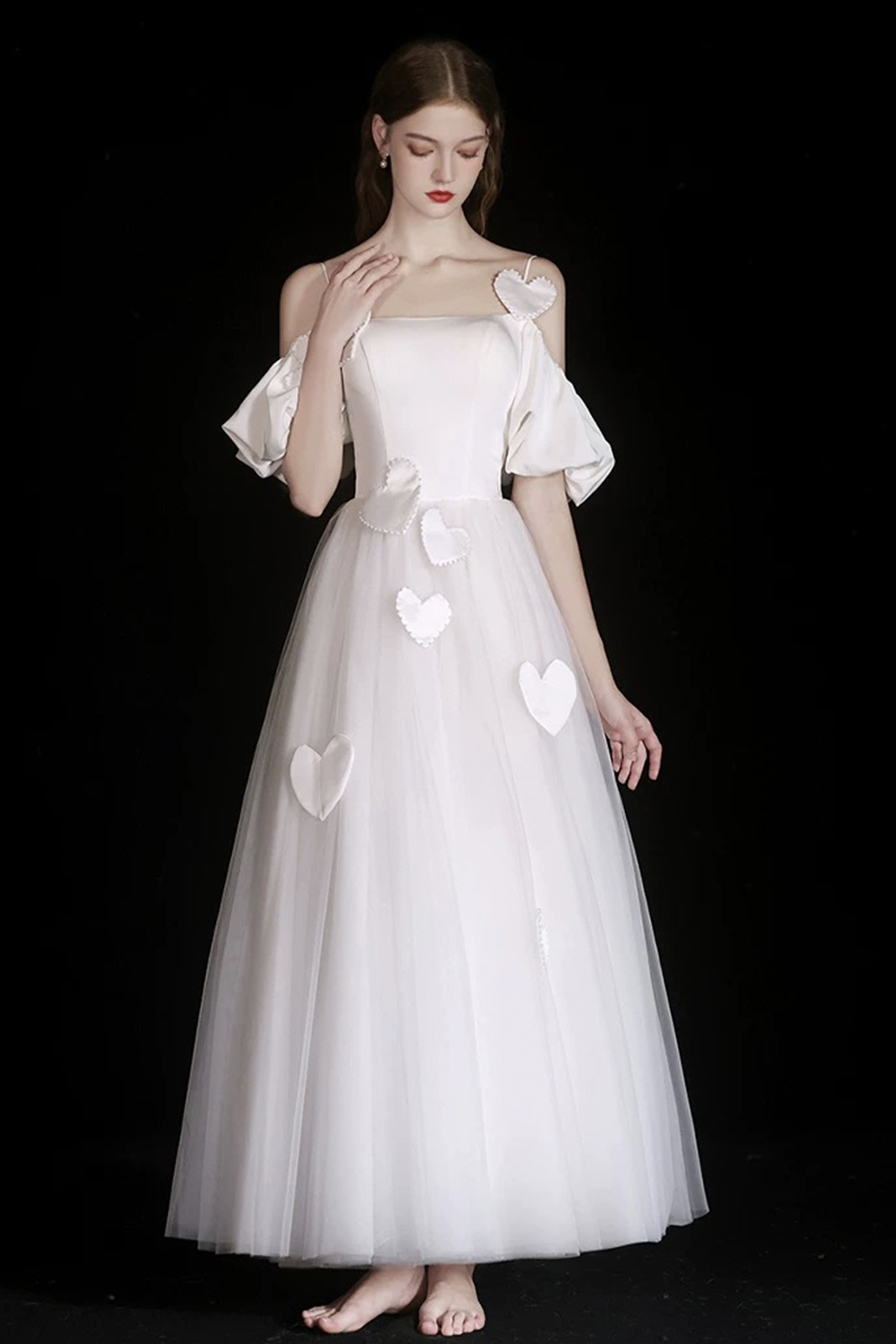 - White Spaghetti Strap Satin Tulle Tea Length Prom Party Dress -