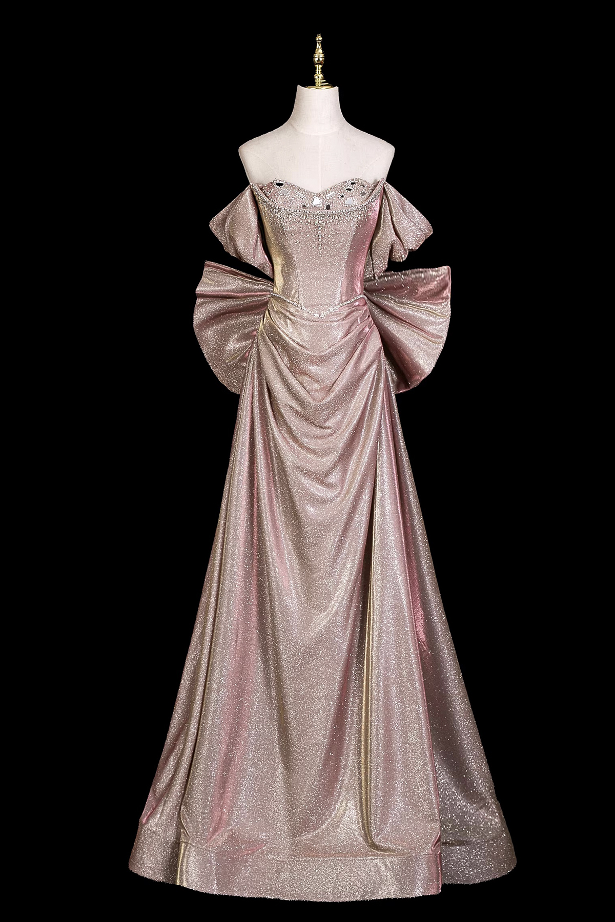 - Luxury Beaded Glitter Evening Gown, Off Shoulder Puff Sleeve Formal Prom Dress -
