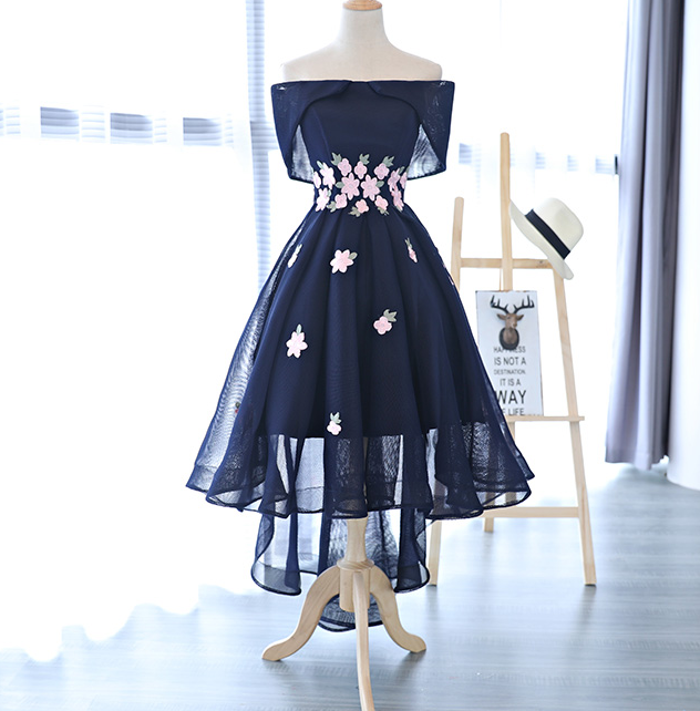 - Cute off shoulder applique high low prom dress,homecoming dresses -