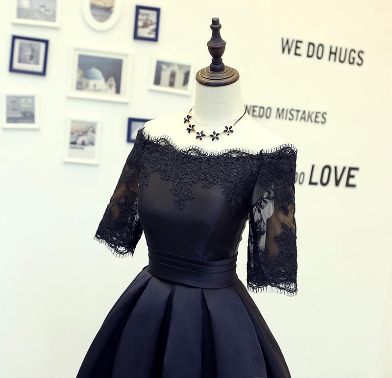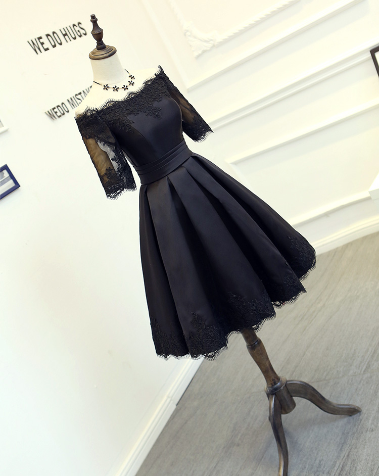 - Attractive lace short sleeve homecoming dress,short prom dress -